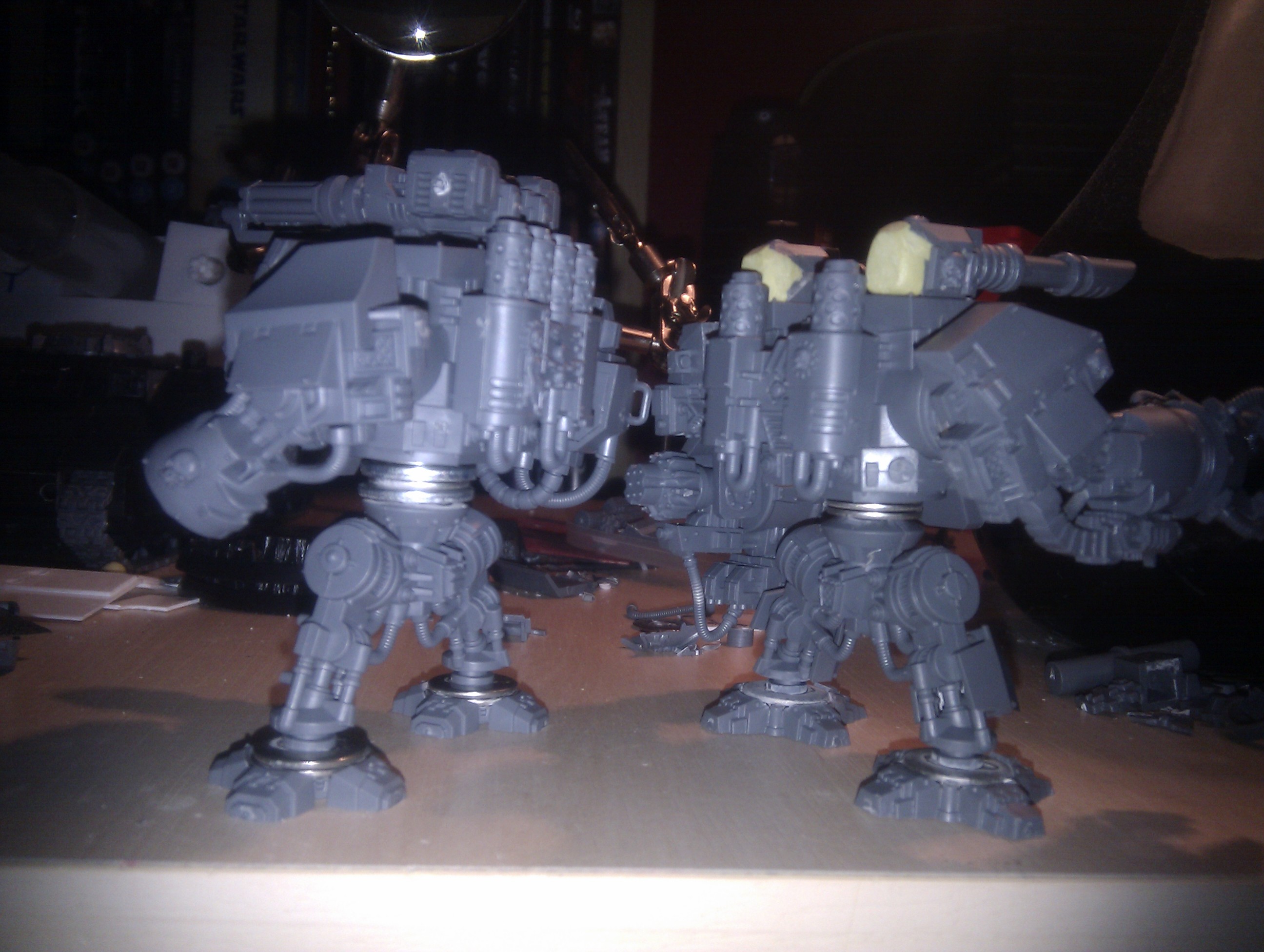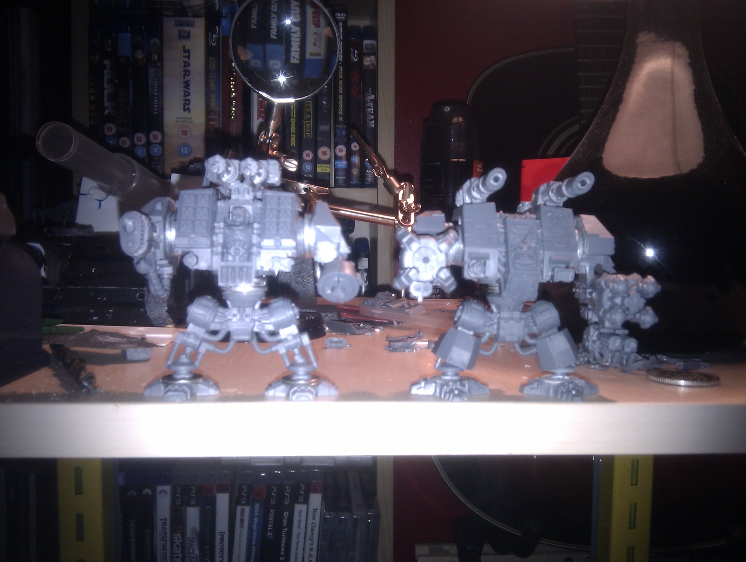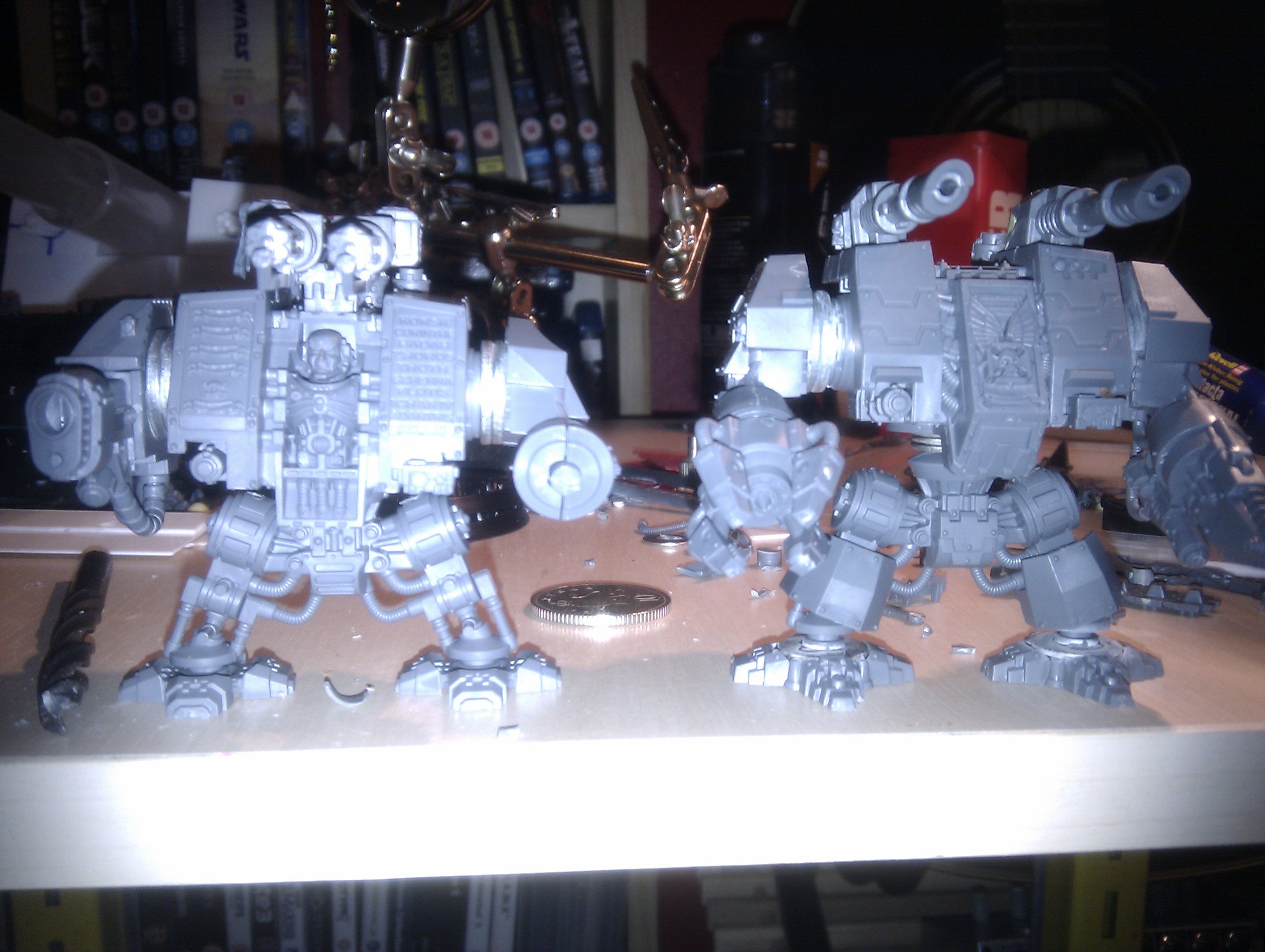 Dreds arrived today. Two land raiders ordered and should be with me next week. My plan is to modify the Dreds as much as possible while keeping the look of them (taller and more weapons is my biggest aim) with magnetized arms so I can swap and change what I want on. I'm thinking I could probably make one transport to carry both Dreds, leaving me a land raider chassis free to make my planned twin turret land raider.