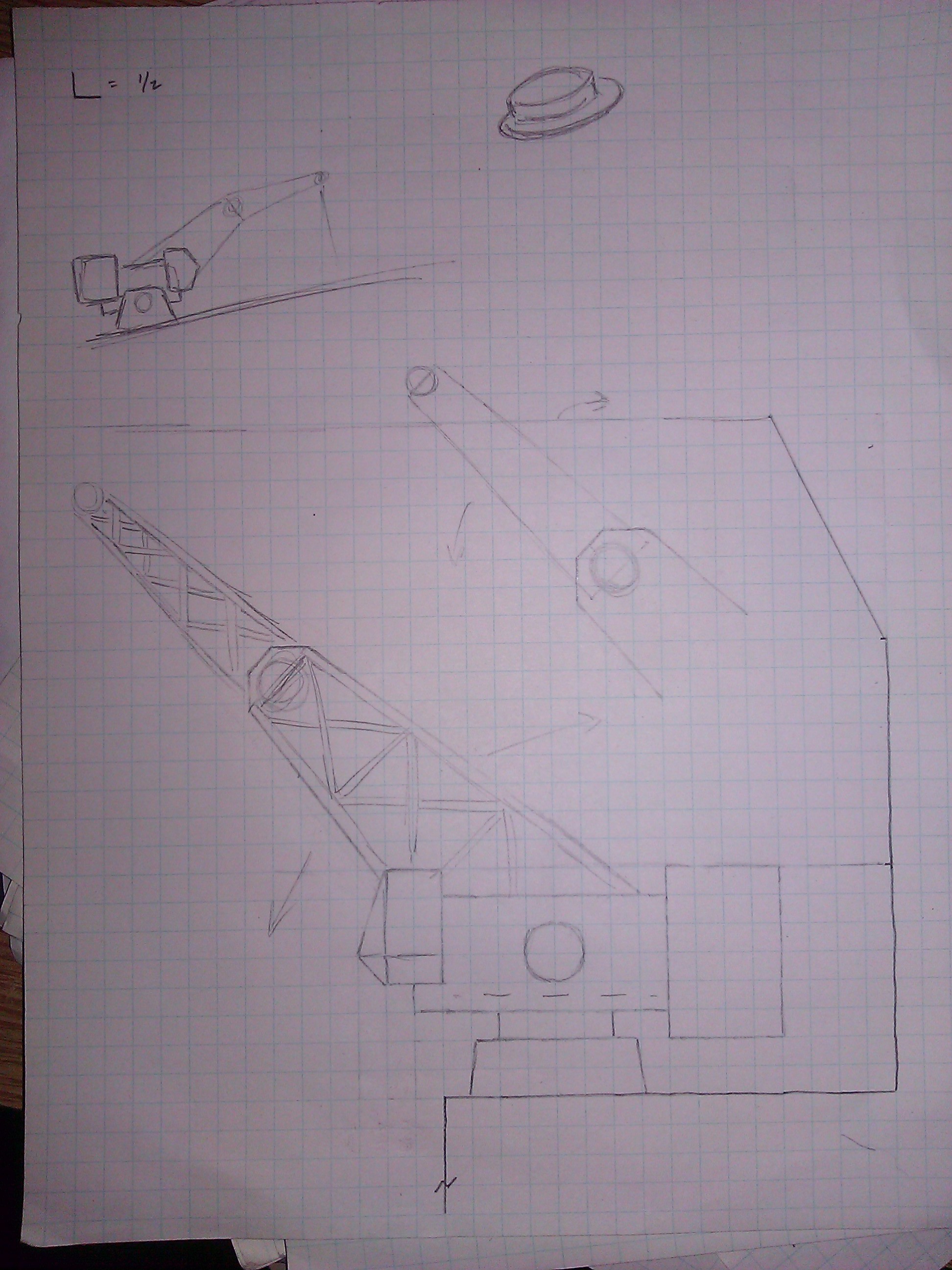 I could start on other floors first, but I always thought you should start from the bottom first, and now that all the framing for the floors are complete it is time to really start on the interior. But I am having issues on the design of the crane for the garage to the belly gun floors...I have decided that I am going to remove the back half of the gun floor (not walls) to accomidate for the crane. So I am courious if you guys like this design or think that there are better. Mind you, I have an 8" radius and a 12" height maximum to build this thing (maybe 10-12" on the crane arm side).