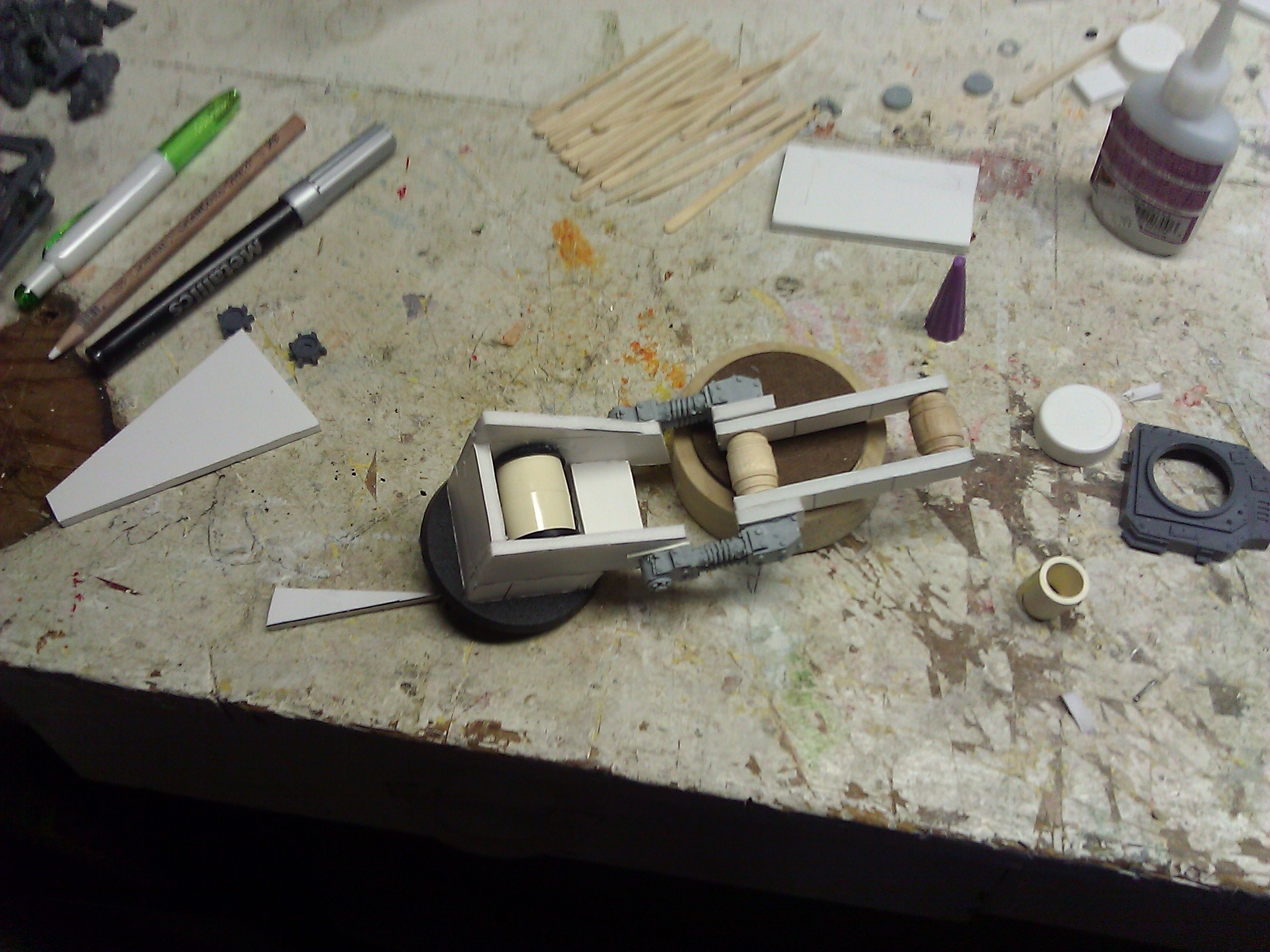 Looking good. I was thinking about building a crane to help with my Reaver assemble. I realized that I have these crappy car bridges (for matchbox size cars) that I never could figure a use for (short pedestrian bridge?). But now I realized they could make great medium size cranes....