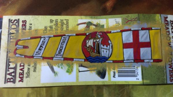 The pennant reads: 'Dieu et mon droit' or God on my right. This is a real motto associated with the current monarchy which I expect is historically inaccurate but I didn't come up with anything else. I went for green as it's a different contrasting colour (like the yellow on the Bristolian unit above). I've limited the palette a lot with this army. I've seen a lot of historical armies that look a bit too random for my taste. All the differing colours make me think of jumble sales. I've allowed the various liveries to have primary colours but all the leggings and other bits are all in earth colours.