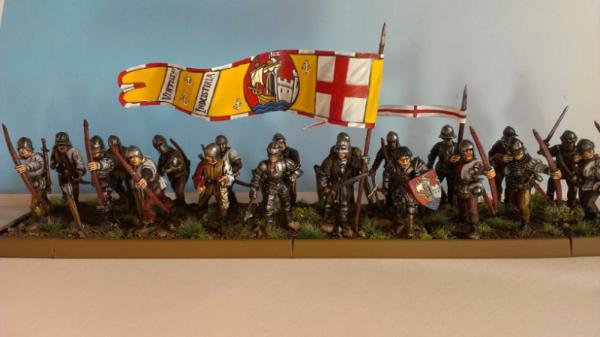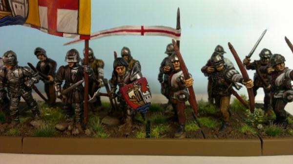 This is where I'll be drawing the line with this army for a while. I've hit the wall with enthusiasm. I'm still looking forward to doing all my knights. I've got a box of Perry's Mounted Men at Arms ready to go and I'll pick up a unit of the Foot Men at Arms once they're released. I'll do a unit of each, I plan to do a nice king and redo my army standard. These guys will allow me to use lots of colour and cool heraldry and should contrast with the commoner foot I've now completed.