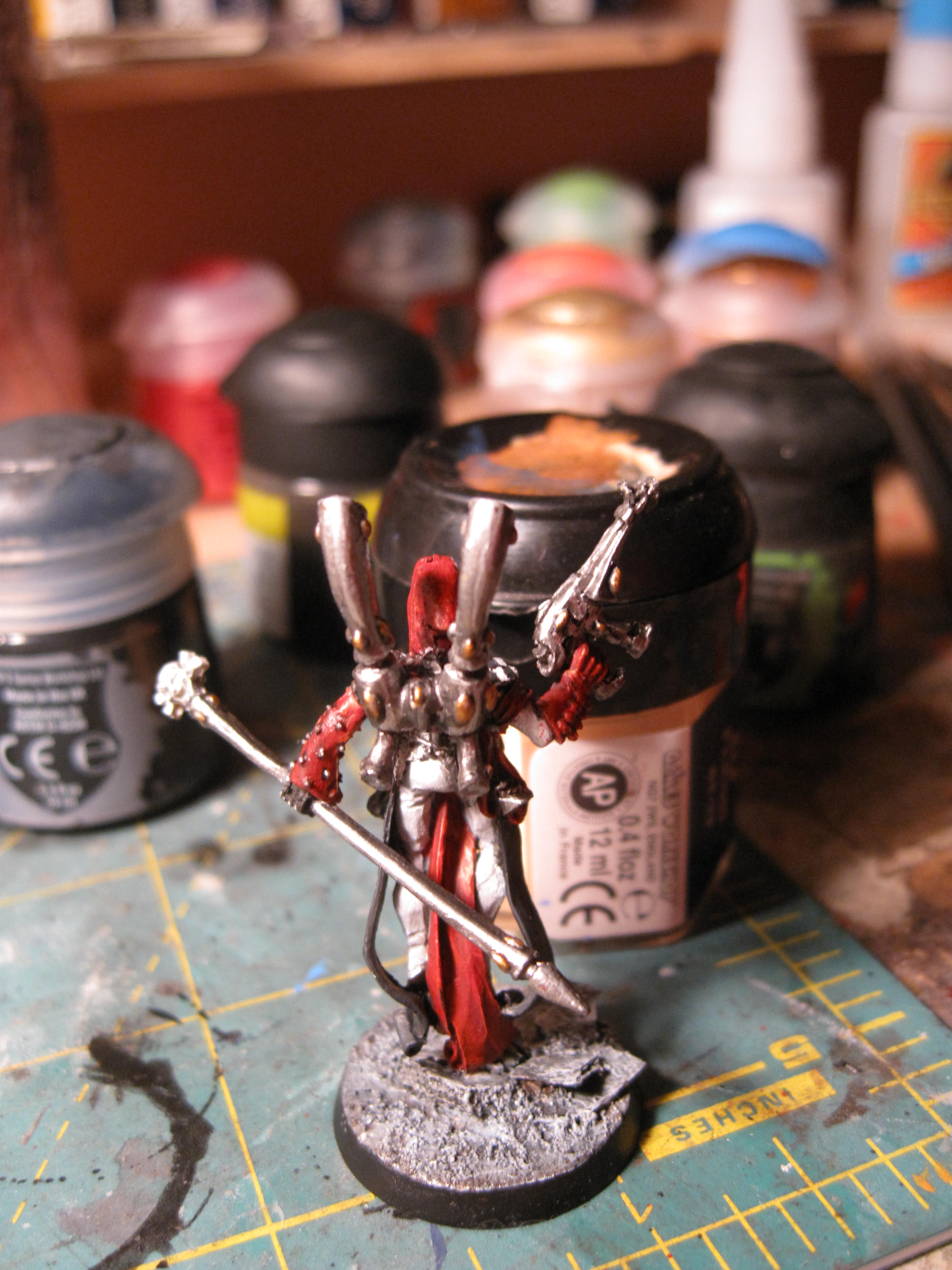 so i have finished half of the eldar commission, the shadowseer, and am almost done with the troupe master.
