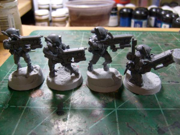Subject: Desert Tau Army Project Updated: Both Fire Warrior Sqds built and Pathfinders 95% Built.