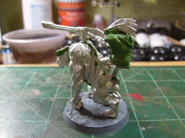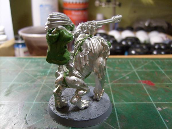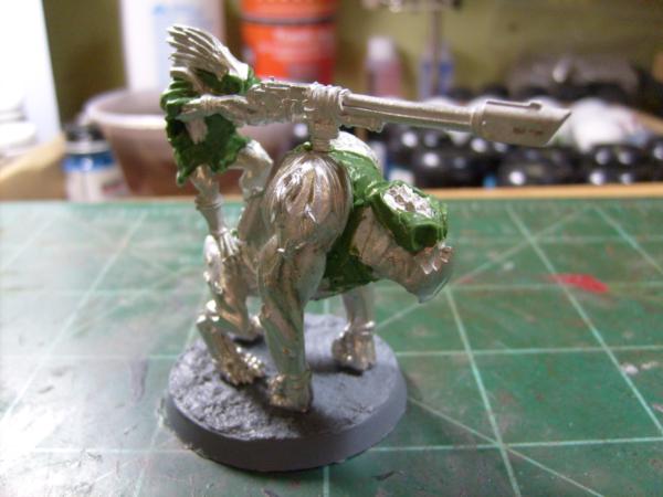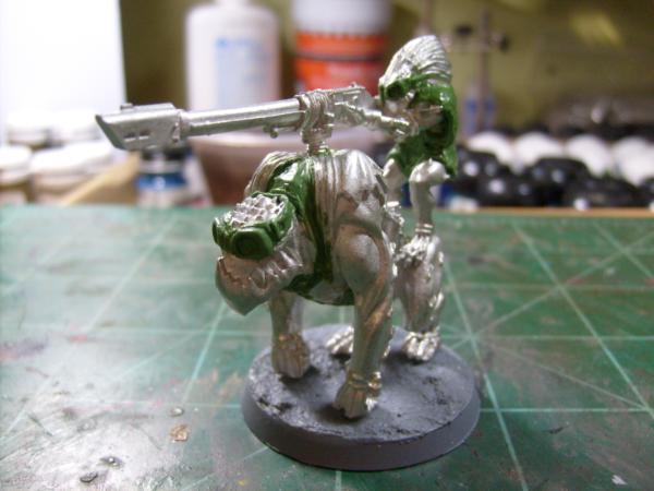 On the Kroot I am thinking about giving them all goggles because of the sun glare and dust. I did this with the Krootox and rider along with giving the rider a poncho that will be pained in the Tau Desert colors. This test is on the Krootox because the GS is easier to remove on the metal model if it doesn't look good. So here is my Kroot: