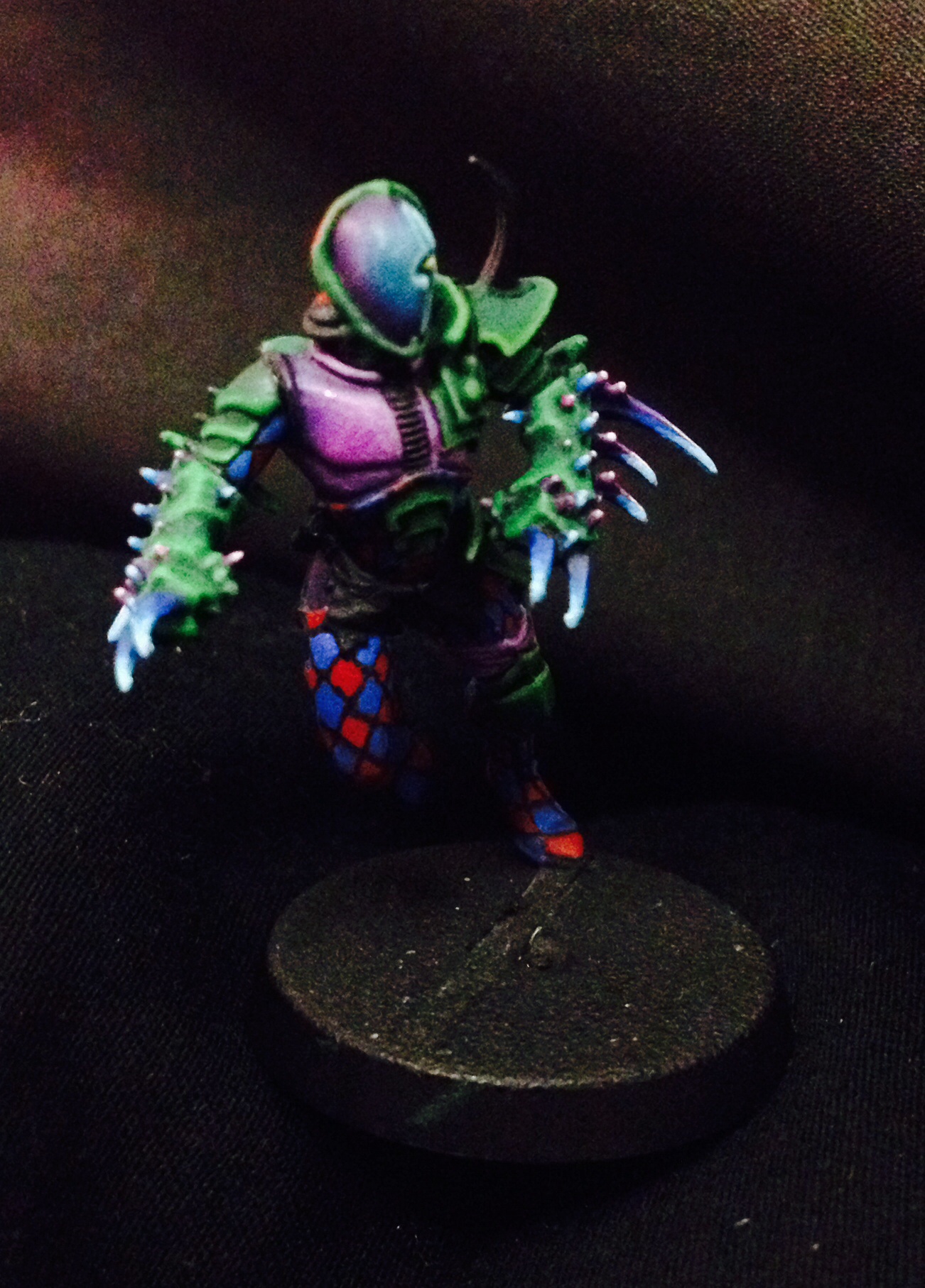 Wow! That's pretty stunning! Looks so evil! I love the purple and green with the harlequin leg. Awesome work man keep it up!