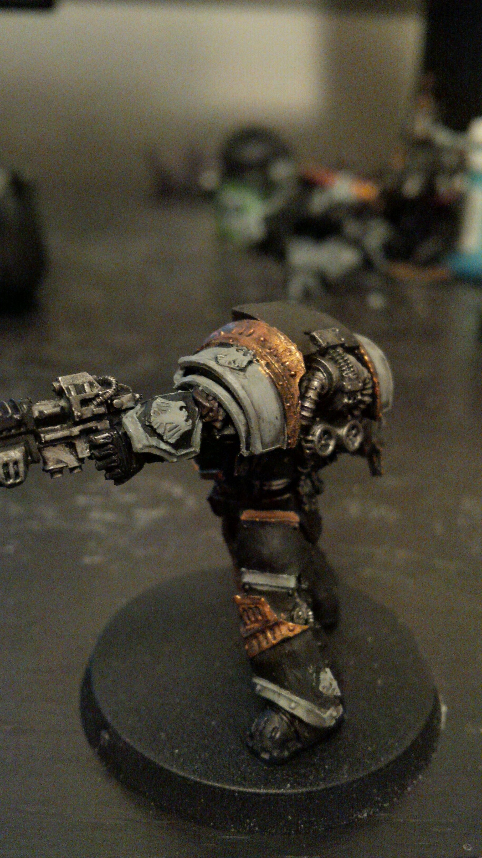 Wow so its been a while since I did any painting on my praetor ( I had to paint 6 centurions up for a game), but I finally got some motivation to continue. First of all I decided to not blend any highlights because the thought of that made me not want to paint at all , they're just standard line highlights. Secondly, I did something I usually never do and that's take photos without touching up any of my highlights, so the model looks pretty sloppy at the moment. Thirdly, the magnet I had on his back wasn't glued on well so thats why theres a grey circle.