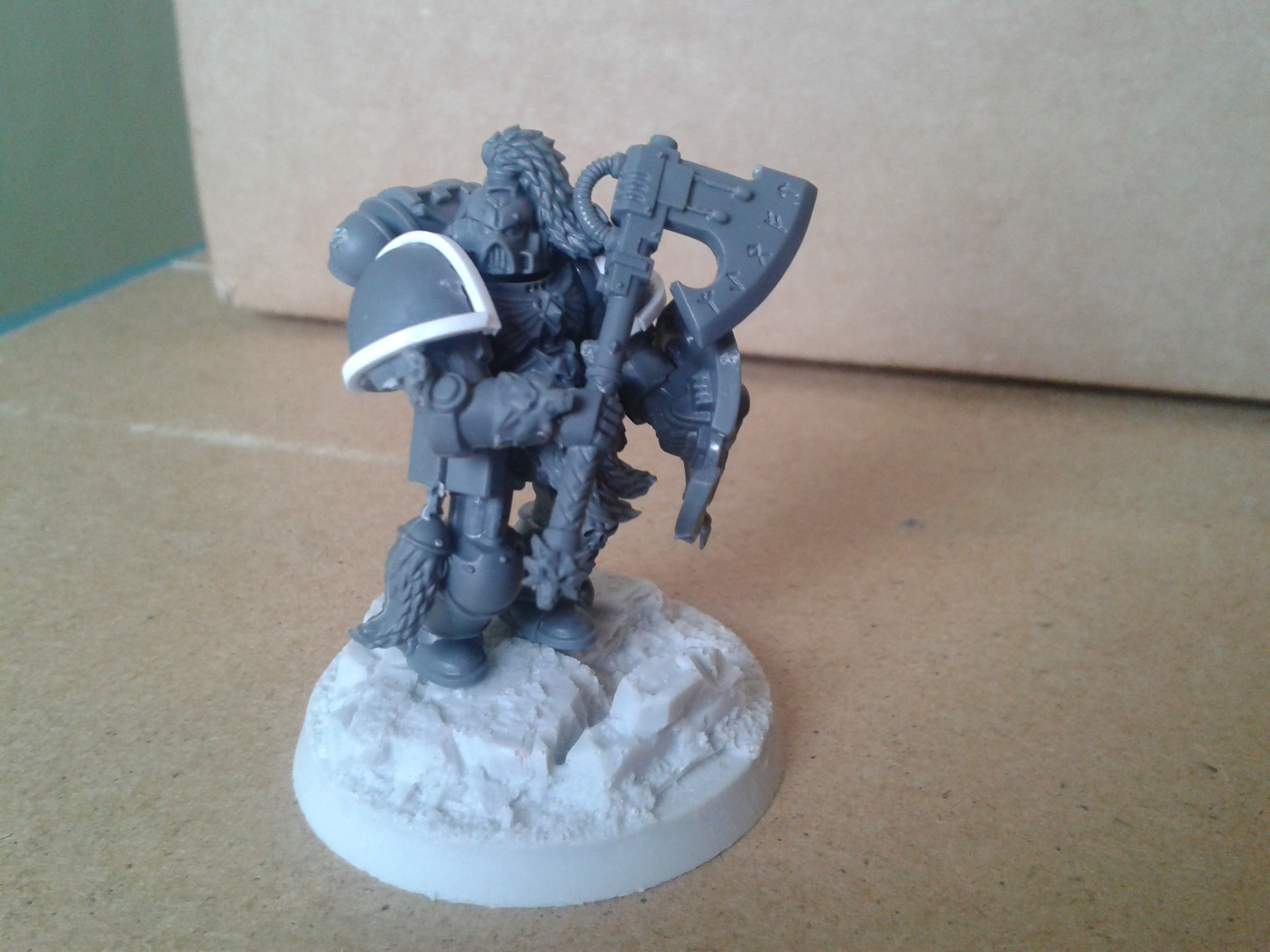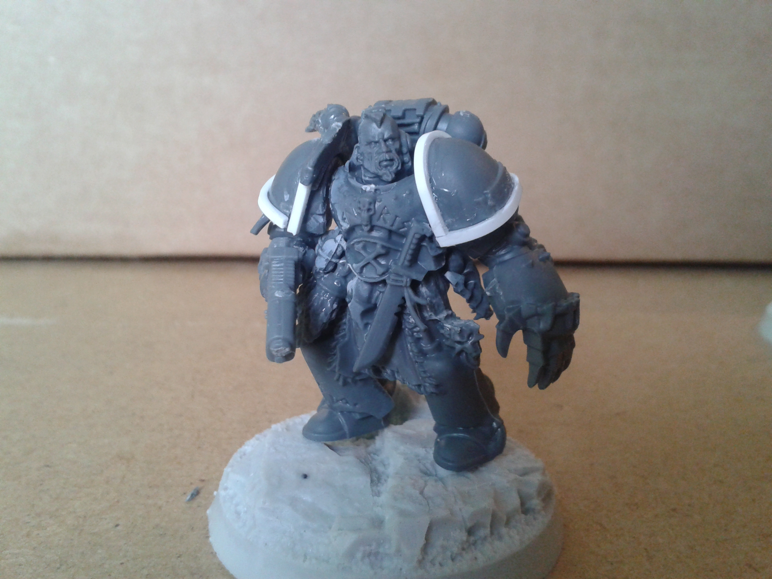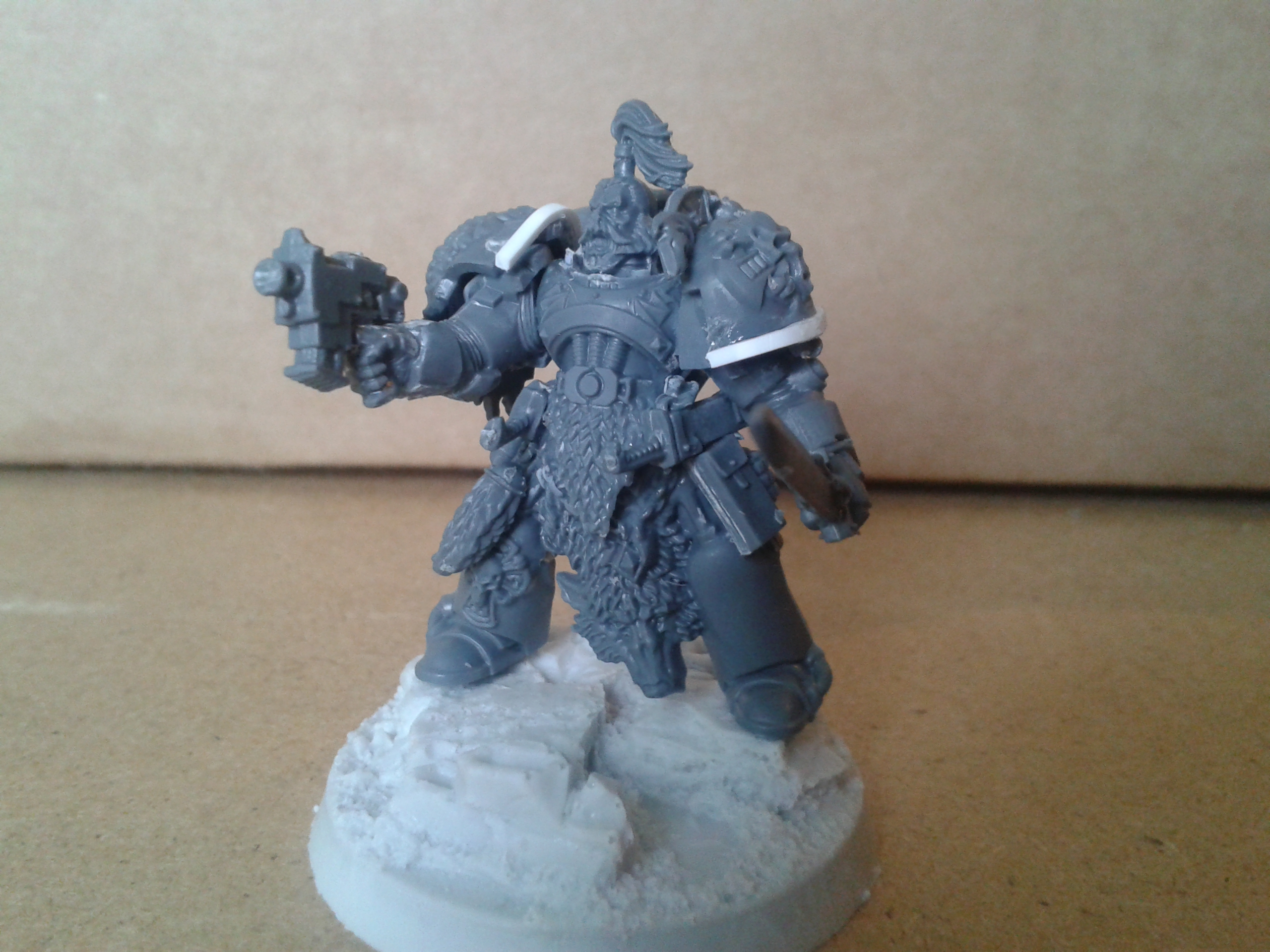 Just done up another space wolf, not as happy with this one, might still move bits around on him.