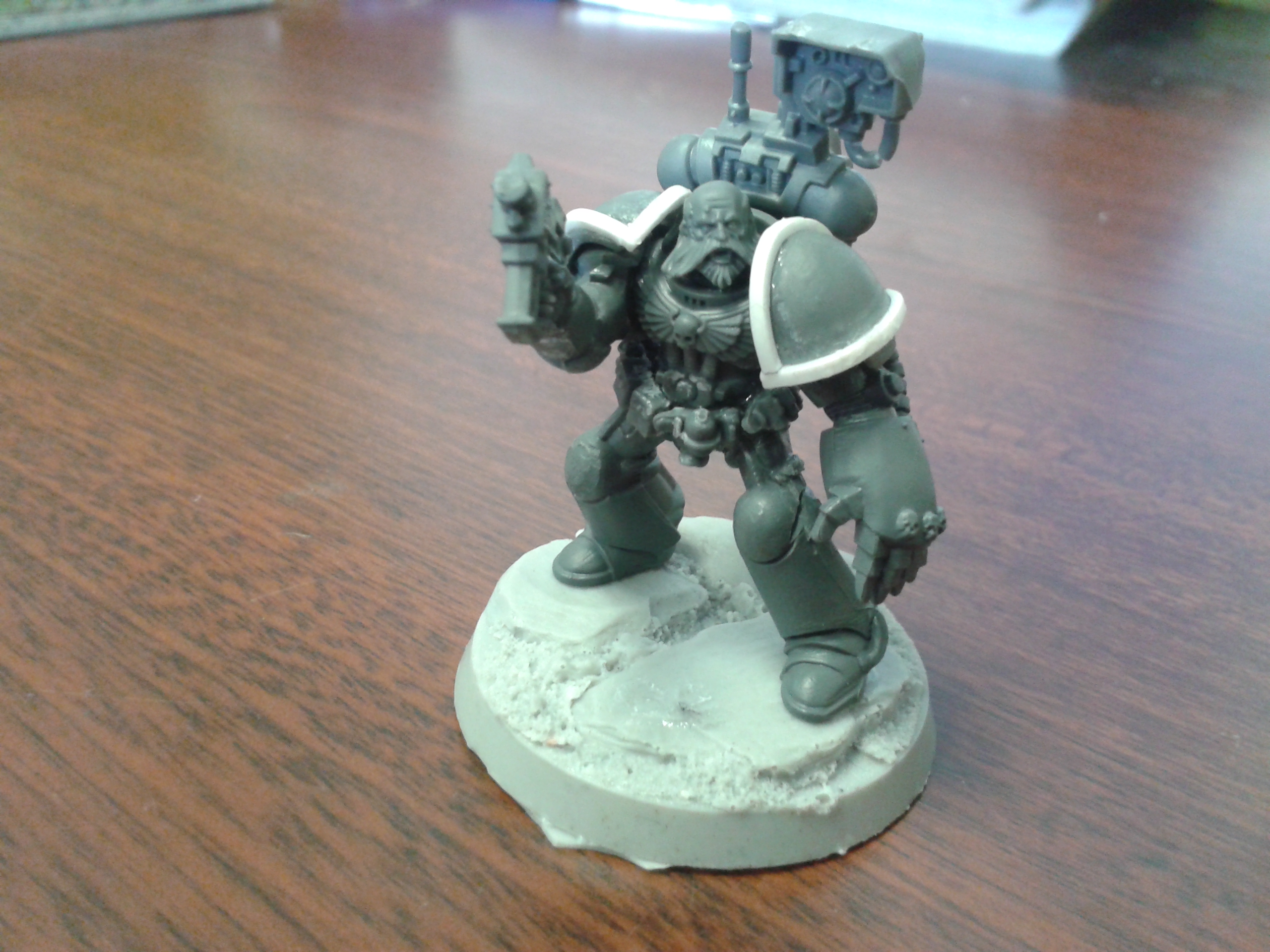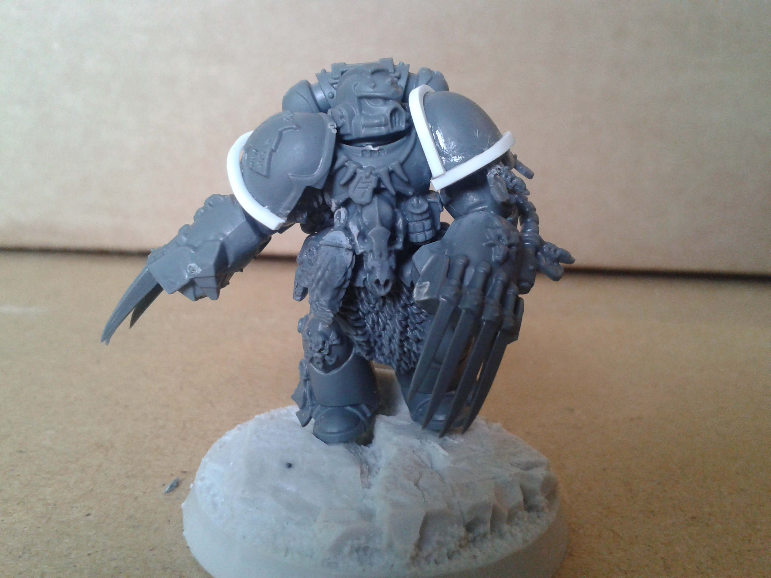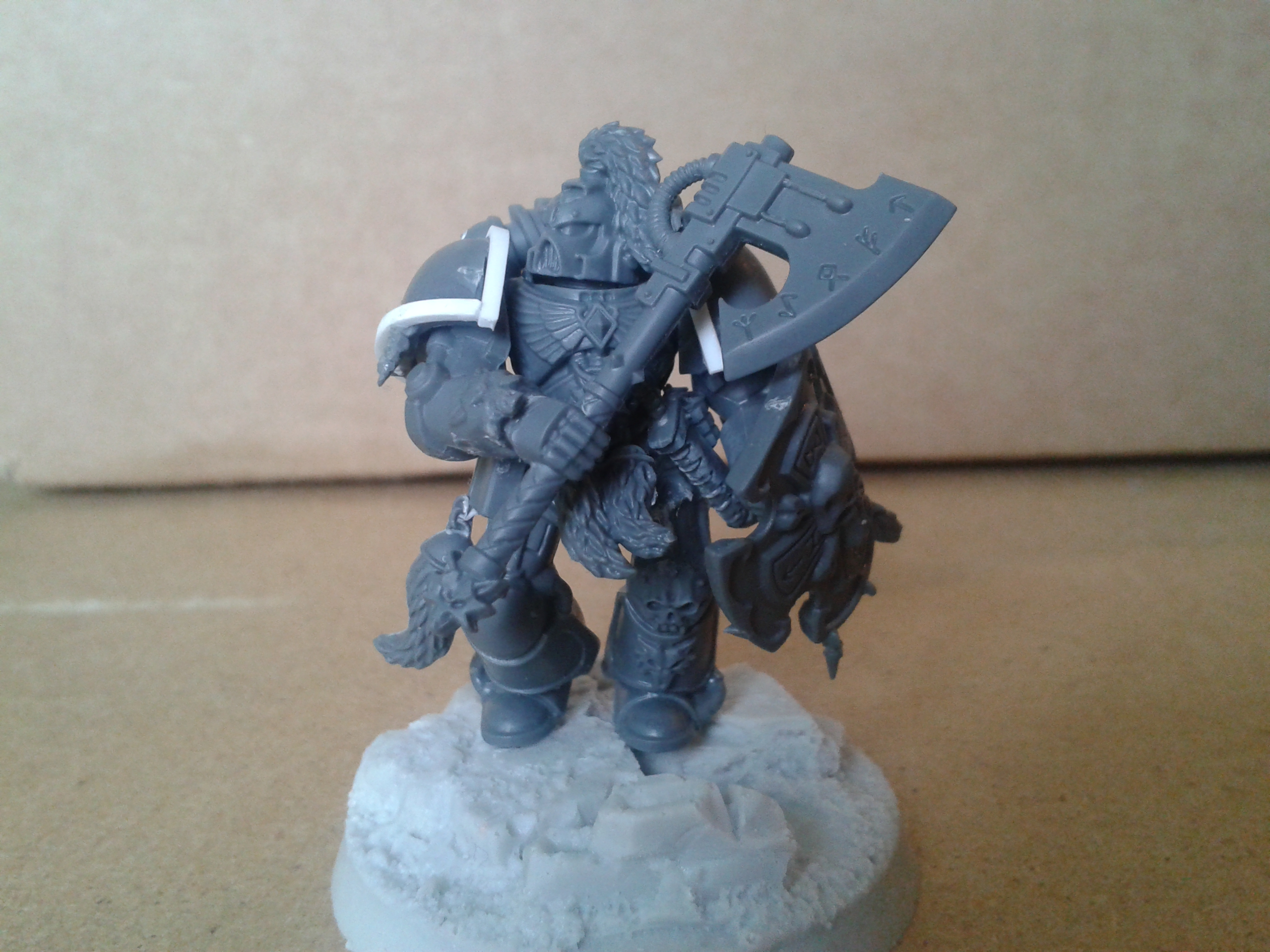 Just done up another space wolf, not as happy with this one, might still move bits around on him.