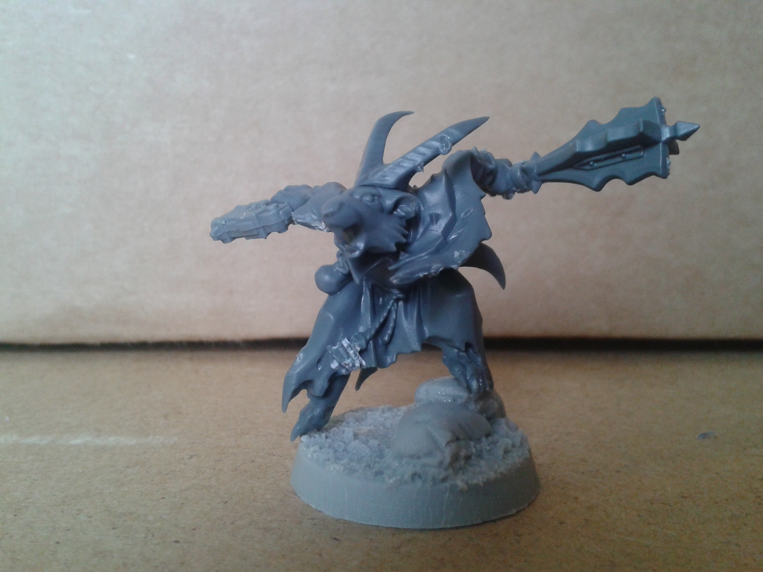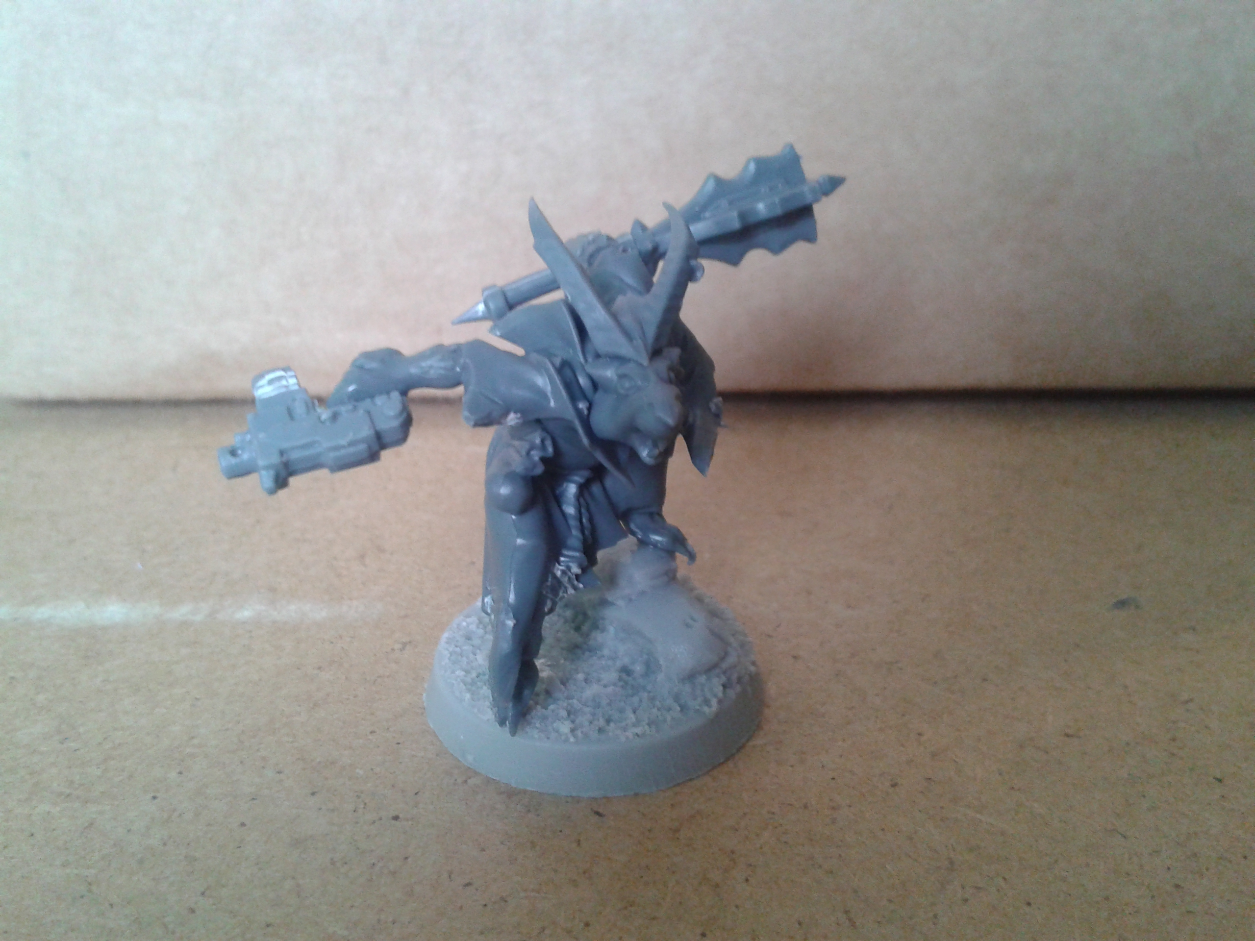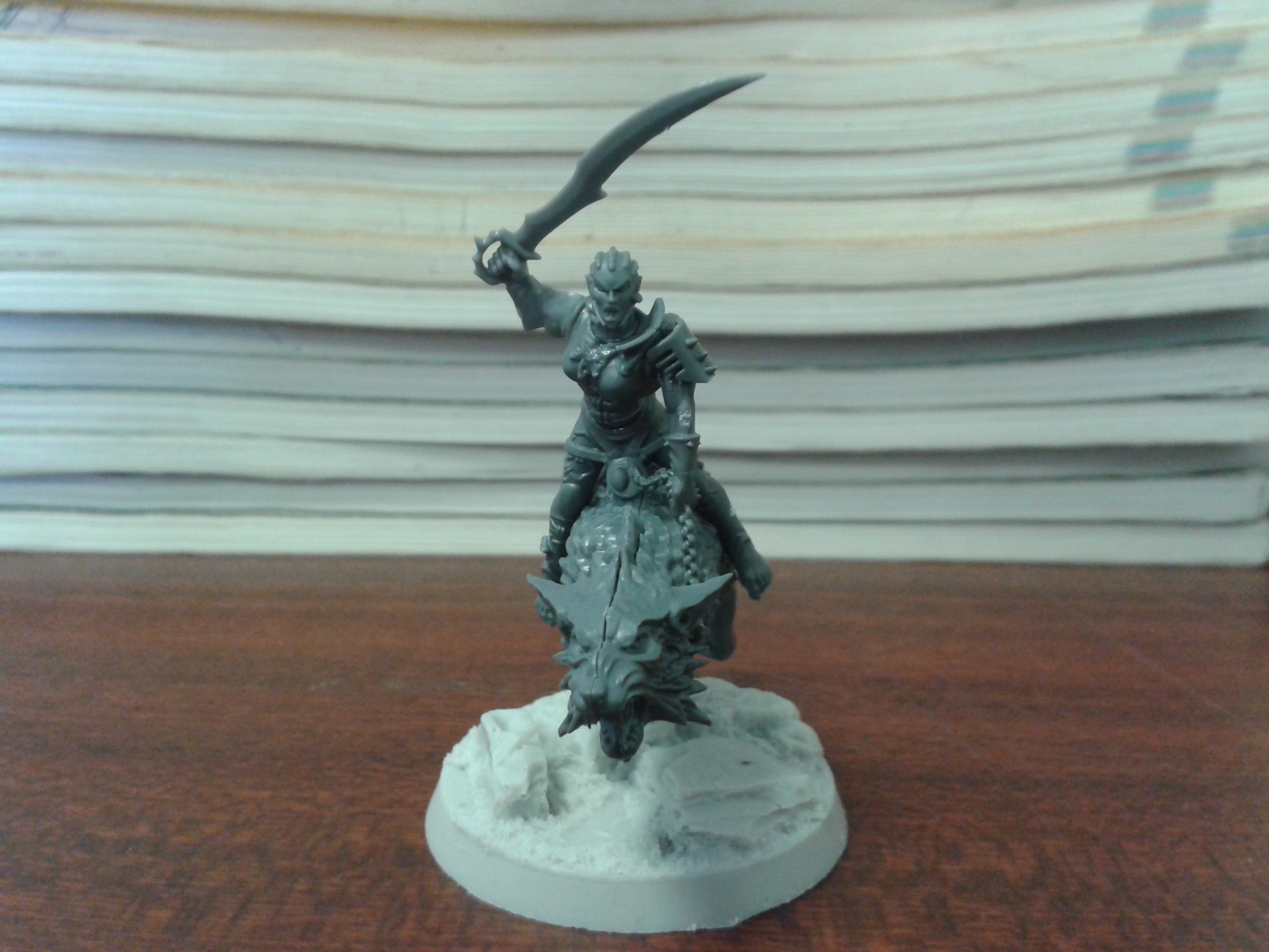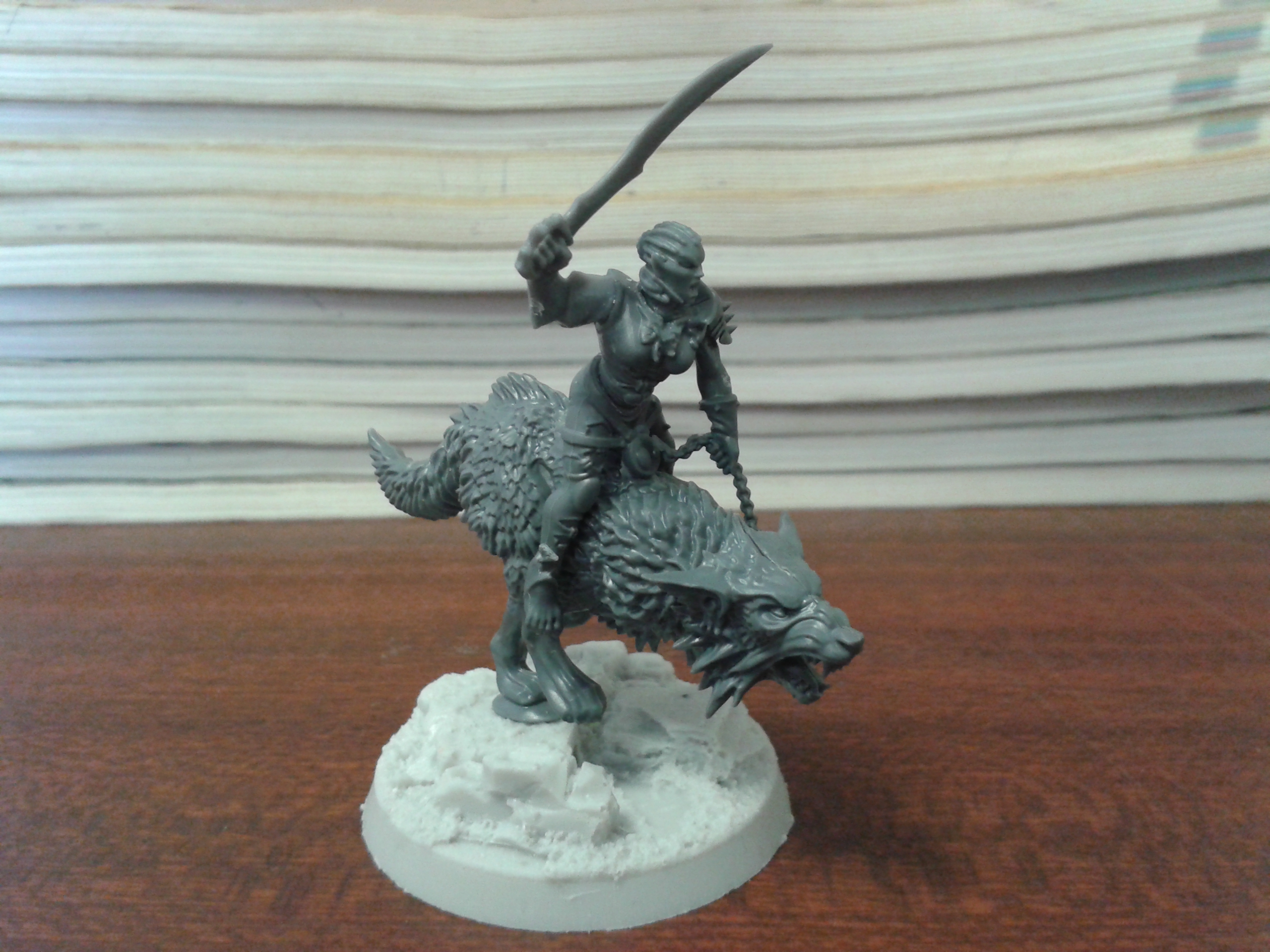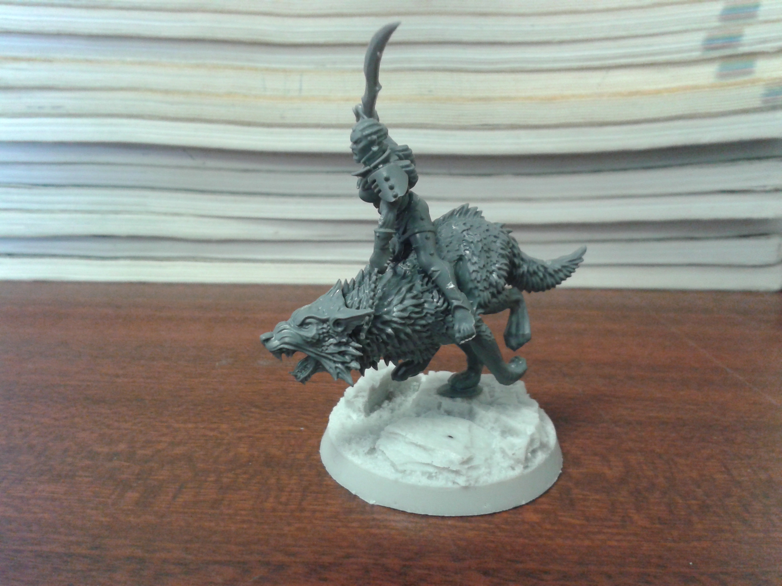 I like the use of the hellion bits! The bare feet and dark elves sword really make the model appear feral and suit the wolf. Great stuff such a good idea! Could make for an interesting exodite army with that theme.