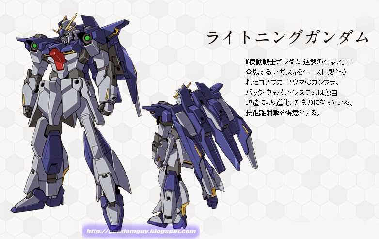 The second male lead is Kosaka Yuuma (Kosaka China's younger brother) who uses the Lightning Gundam, which appears to be based on the Re-GZ and the REZEL