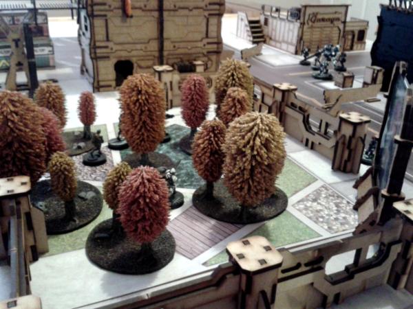 I must admit, the table does look very nice. Painting things well will improve it dramatically, but don't rush things. Part of the fun of Infinity is putting together cool tables. Take your time and enjoy the process.