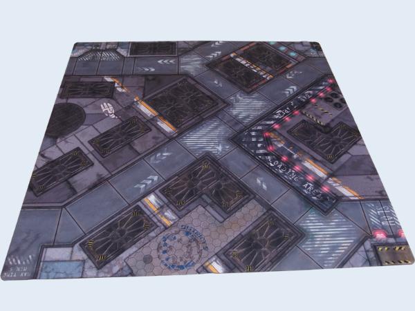 It's 4'x4', and sensibly has a diagonal line down the middle which really kills length of the board fire lanes. It's obvious that they're making it to fit their buildings (as expected) due to the shapes of the building footprints (the L shape is a dead giveaway) but it would work for any buildings. You then wouldn't have to bugger about with the tiles, and the diagonoal line means simply turning the mat will create a different feel each game.