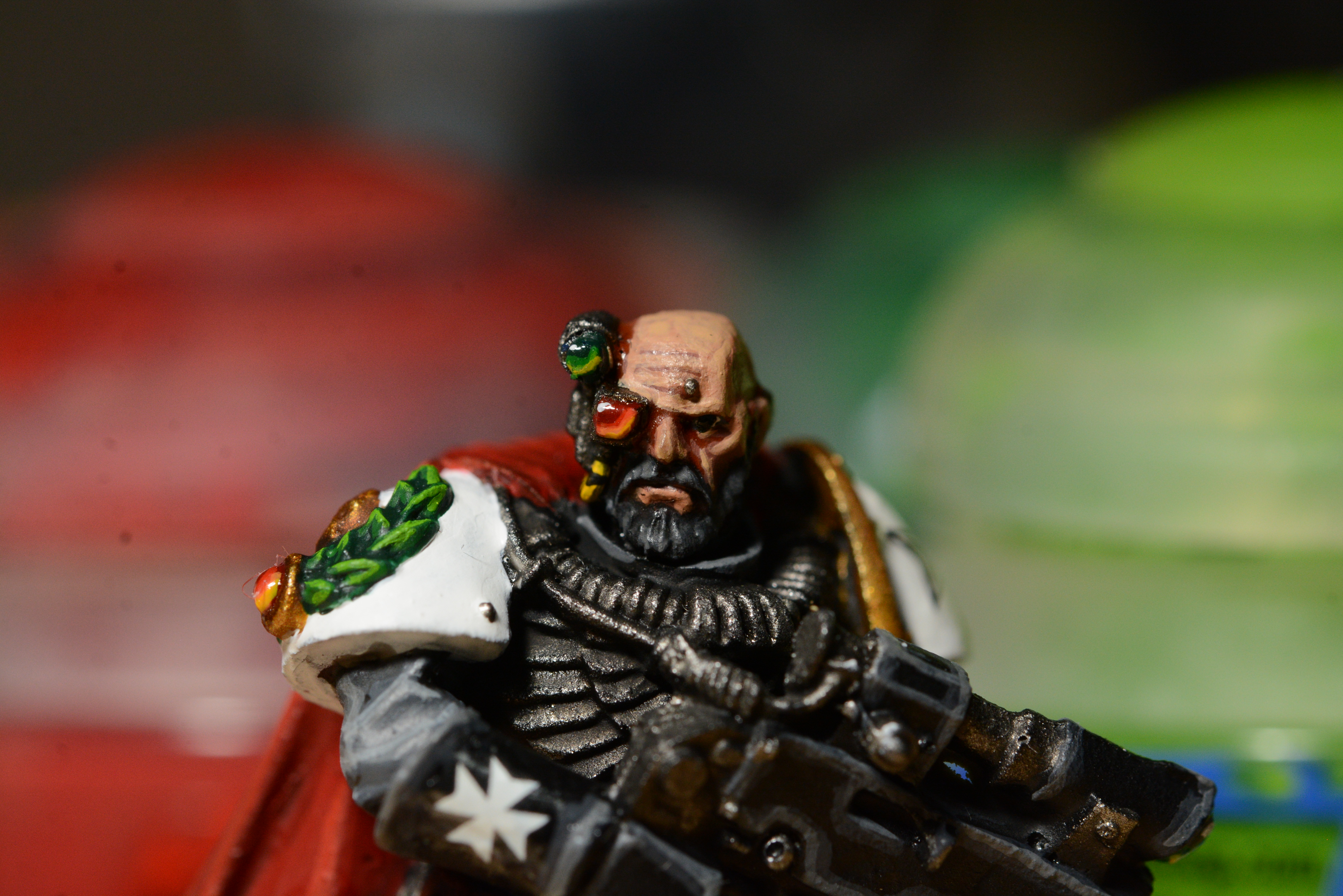 Thanks so much for the kind words! I always liked the idea of some battlefields in 40k being littered with the detritus of centuries of war, and making this a little nod to how I kind of see my Orks as the foil to my Templars. Totally by accident, but it wound up in perfect stomping distance from the Ork's foot, which kind of made it feel like the opening scene from a Dawn of War trailer when I was focusing my macro lens on it hahaha.