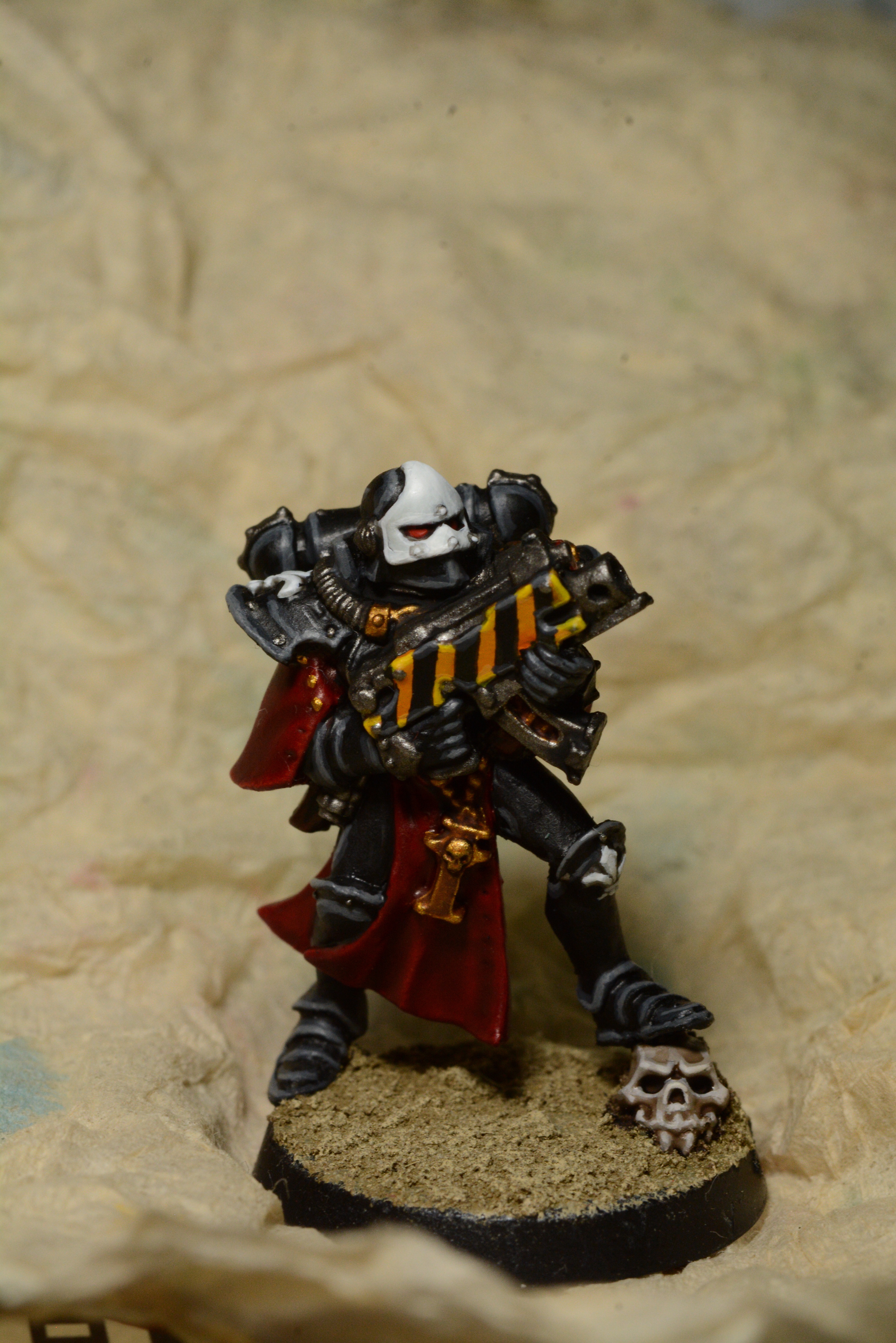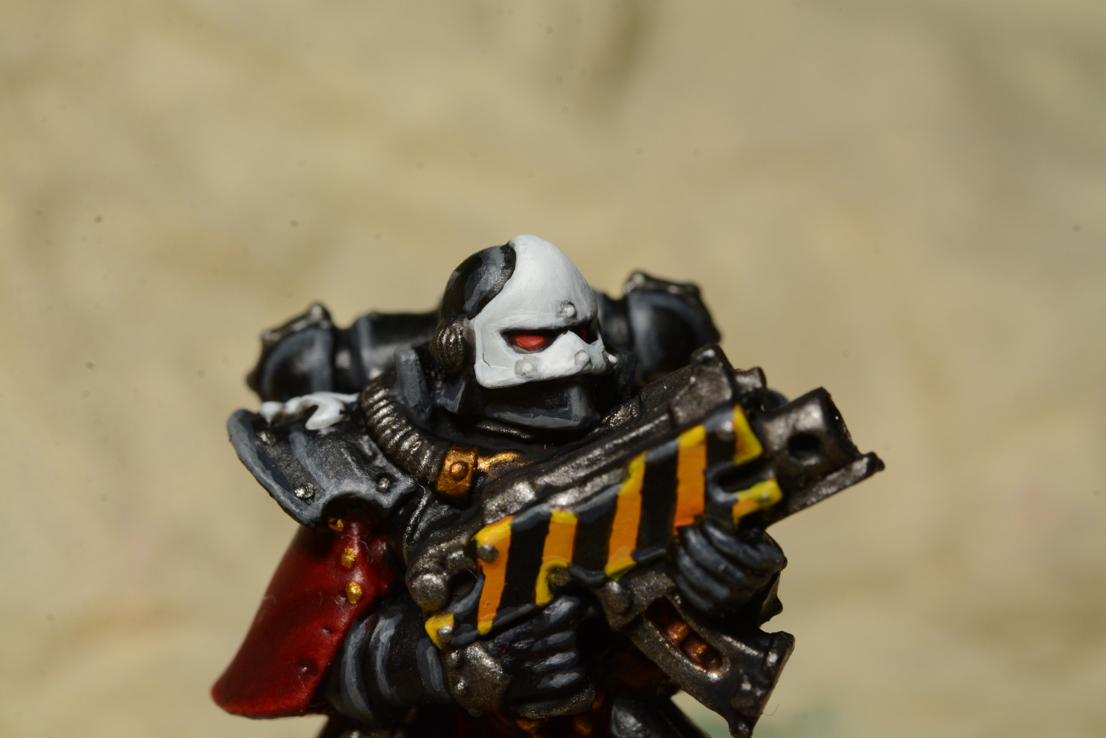Thanks very much! I've been a bit cracked out on painting hazard stripes lately - the effect is quite striking, but I feel like my freehand is improving a lot, and it's a simple way of visually tying together a lot of my imperium armies. I got the idea from the classic Blanche SoB codex artwork, and I feel like it suits the old metals. I wasn't really sure how to paint the bolter casings initially. Usually for my Templars I do 'em black, but I think with these flatter, older metal sculpts, that would make them a bit too indistinct. The yellow stripes are suitably retro and hi-vis, imo, and add a bit more impact to the otherwise limited pallet of the Order of our Martyred Lady.
