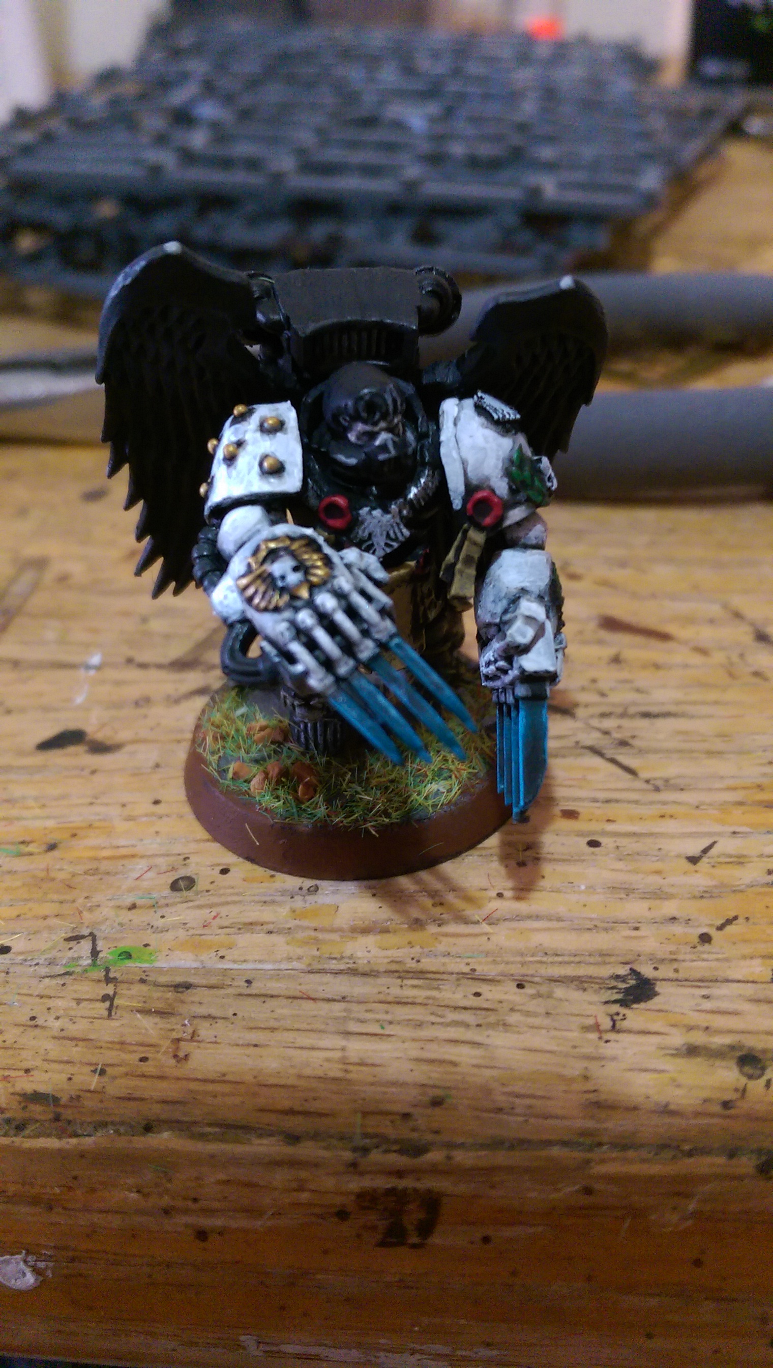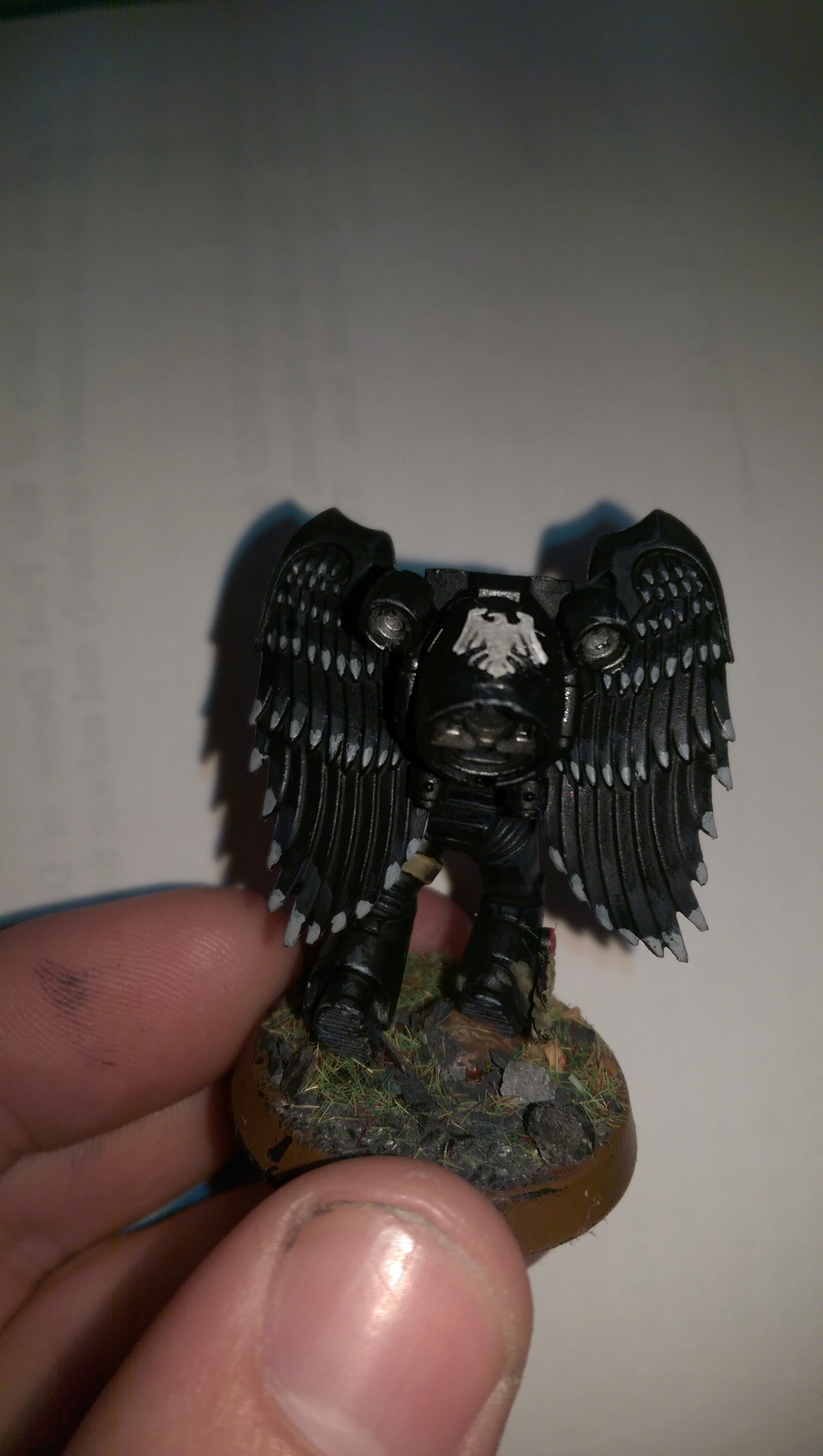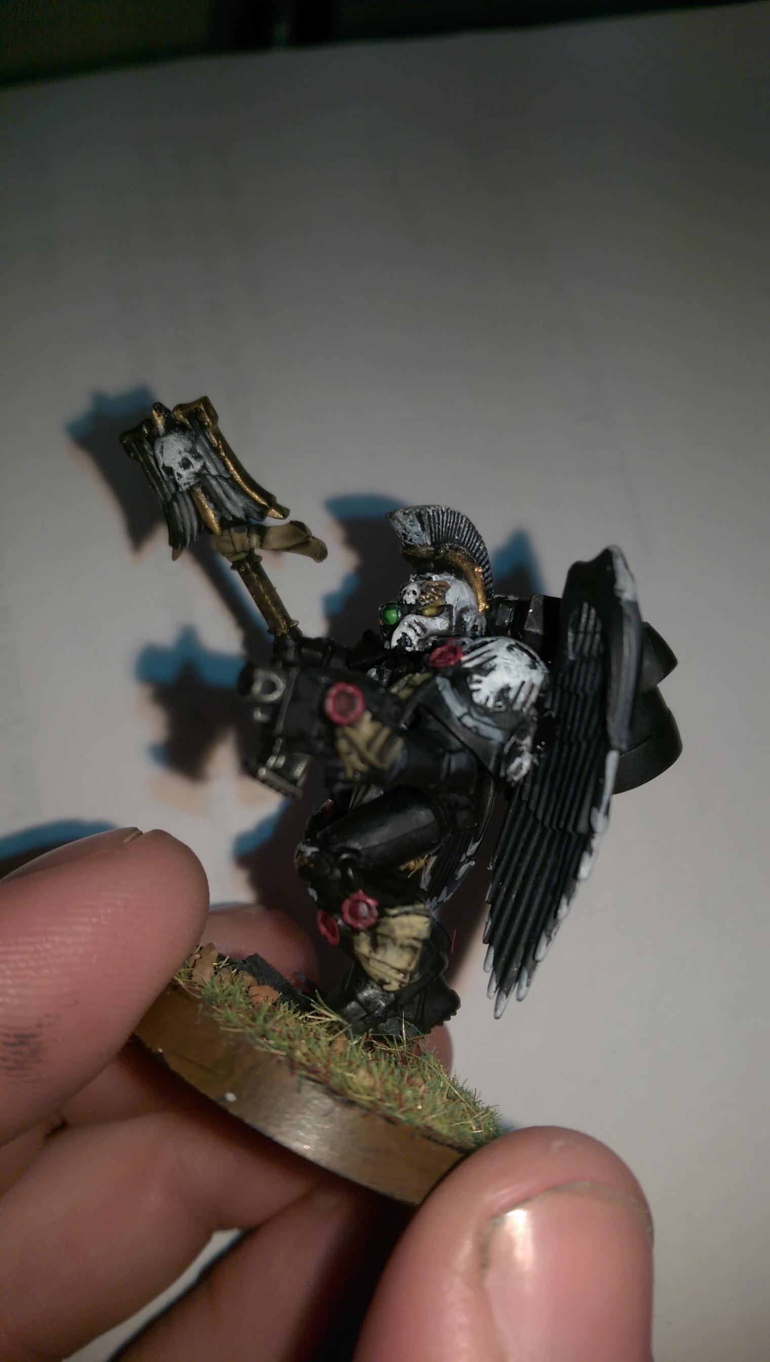 That chaplain looks nice! Have you thought about maybe a line highlight of grey along the edges of the wings? At the moment they don't really stand out from the backpack.