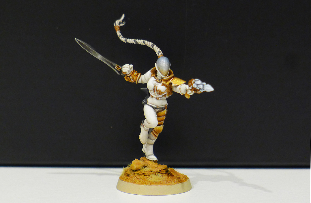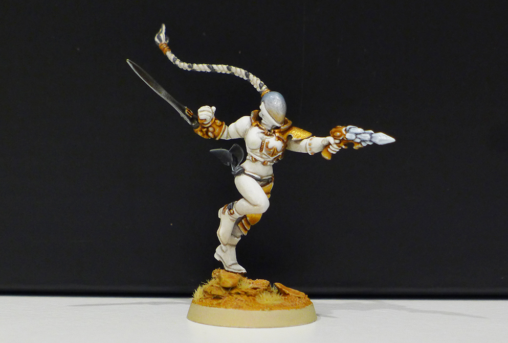 Love the model as well. Really nice motion to it, and I love the paint job. I like the contrast of how bright, clean and heroic she looks when underneath lurks an Eldar even the Harlequins abhor.