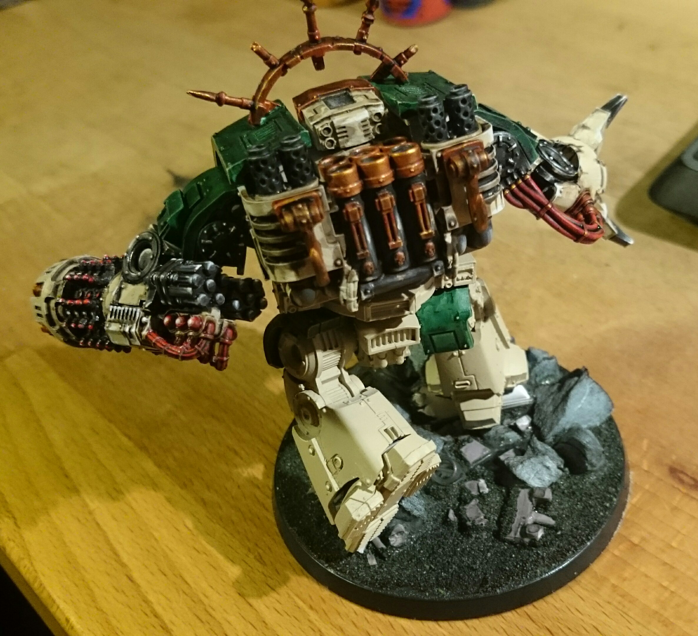 And finally it's done! Feeling pretty good after this one, marks something of a milestone in my painting skills when comparing it to the Contemptor or previous DG fellas. Especially considering I had to emergency CPR all my green paints back to life from their dehydrated hibernation, which resulted in them being nearly useless puddles of water