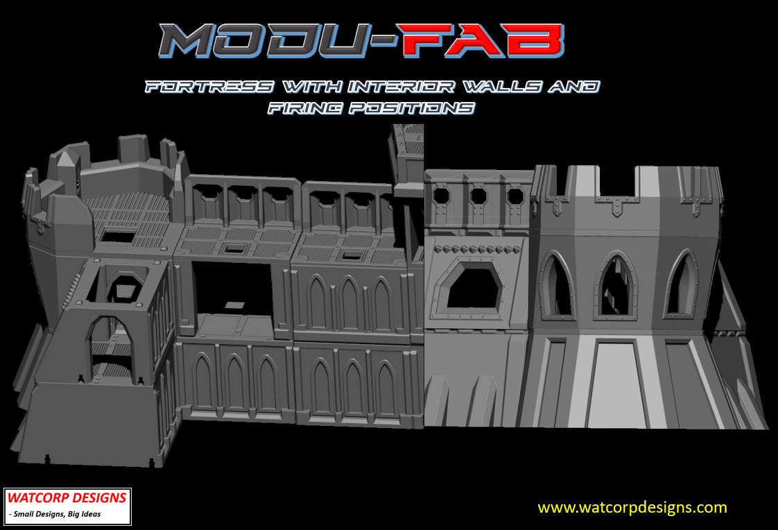 The modular fortress comes in 2 different height styles that can be combined to make double height walls. Walls are also compatible with the other Modu-fab files to allow for even more builds
