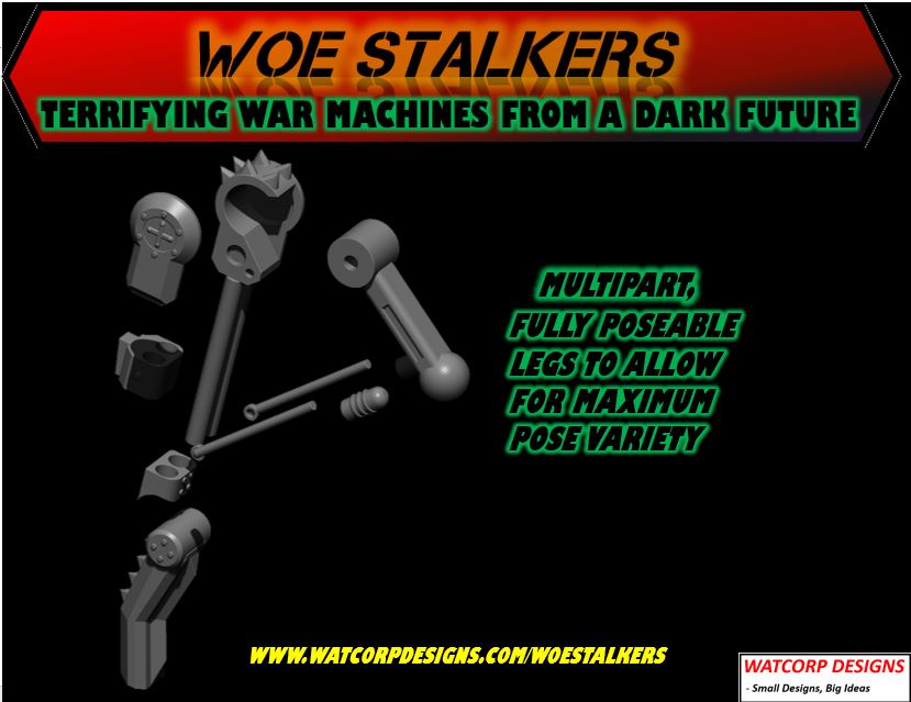 This a kickstarter launching in February to create home 3D printable 200mm height tripod warmachines (actual height can vary between 185mm and 220ishmm depending on stance)