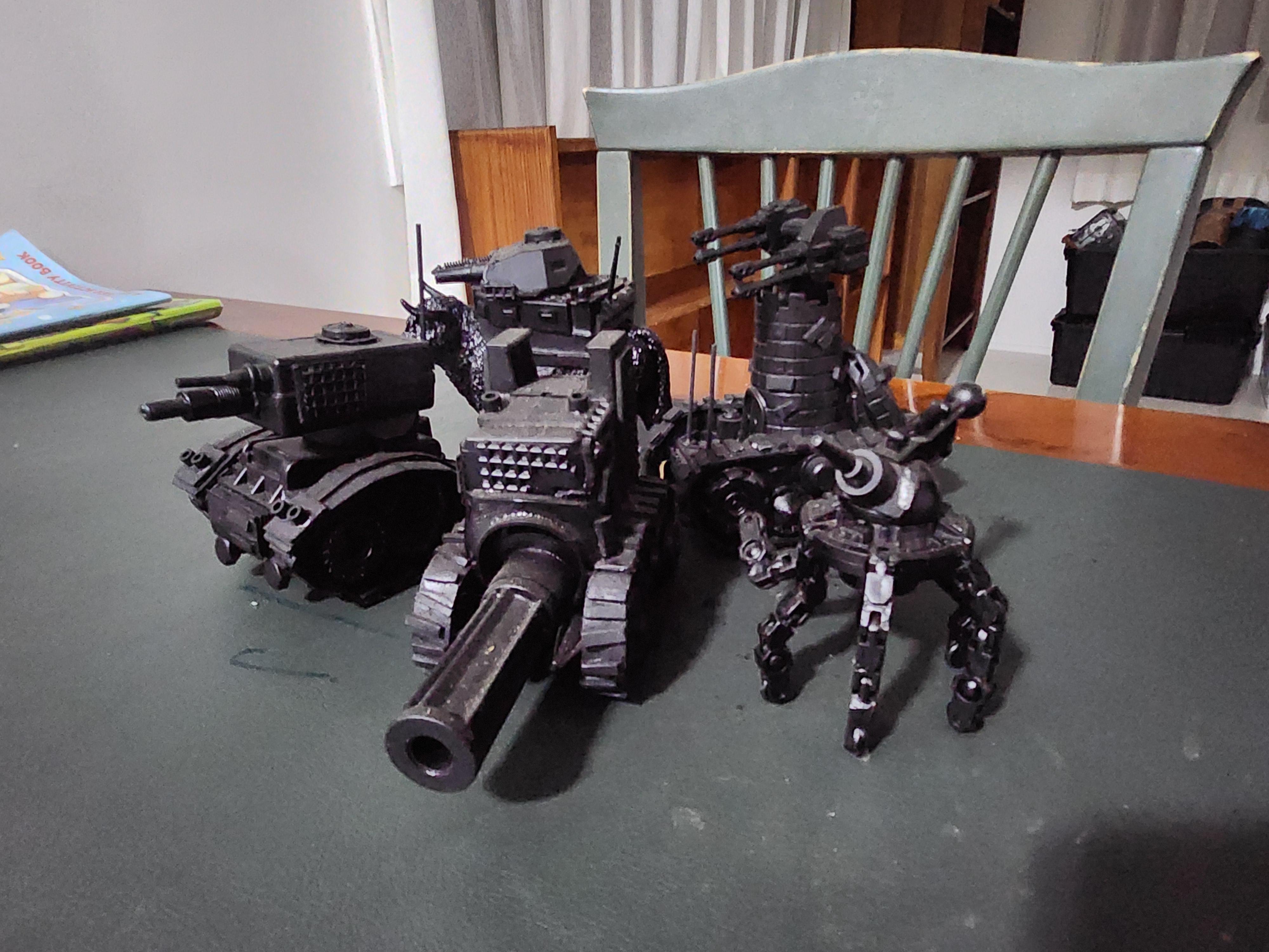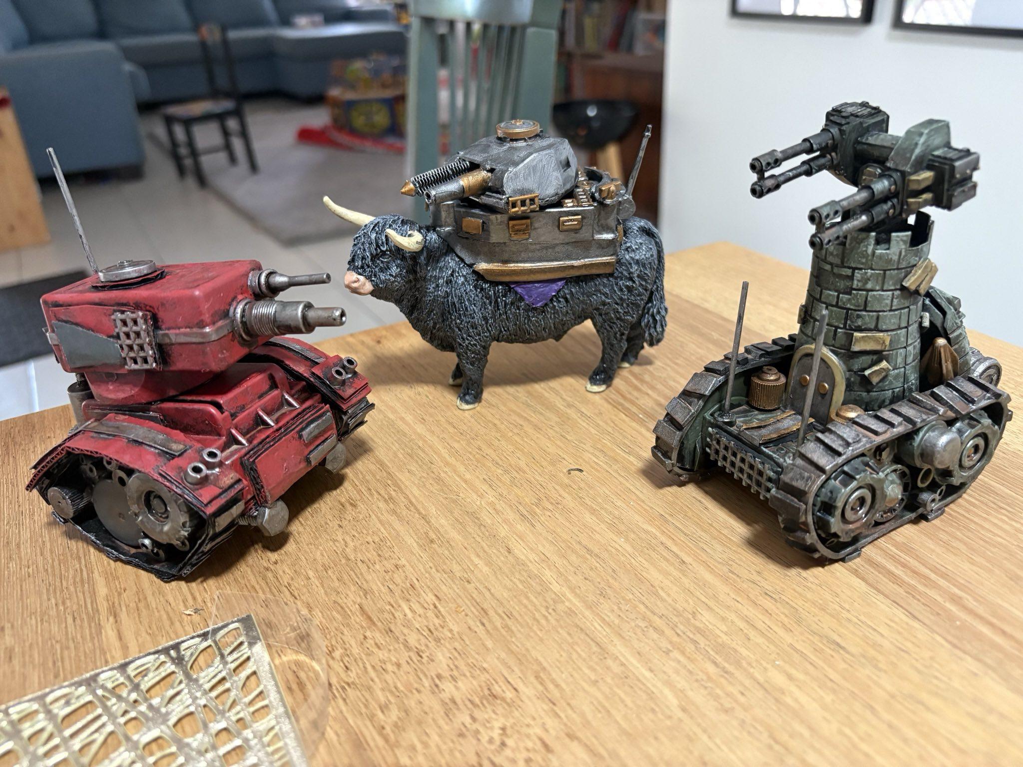 I've made (mooed) some progress too, with some base coats (cowts) and washes and a bit of messy (moossy) drybrushing. I'm pretty confident (cownfident) I'll get these three done before New Years ( Moo Years) - just need another hour or two - I'm not paying too much attention to detail and the grunginess kinda (cownda) plays into the whole TONKS aesthetic. Happy with this output in amongst the chaos (cowos) of the last few days ( moo days)!