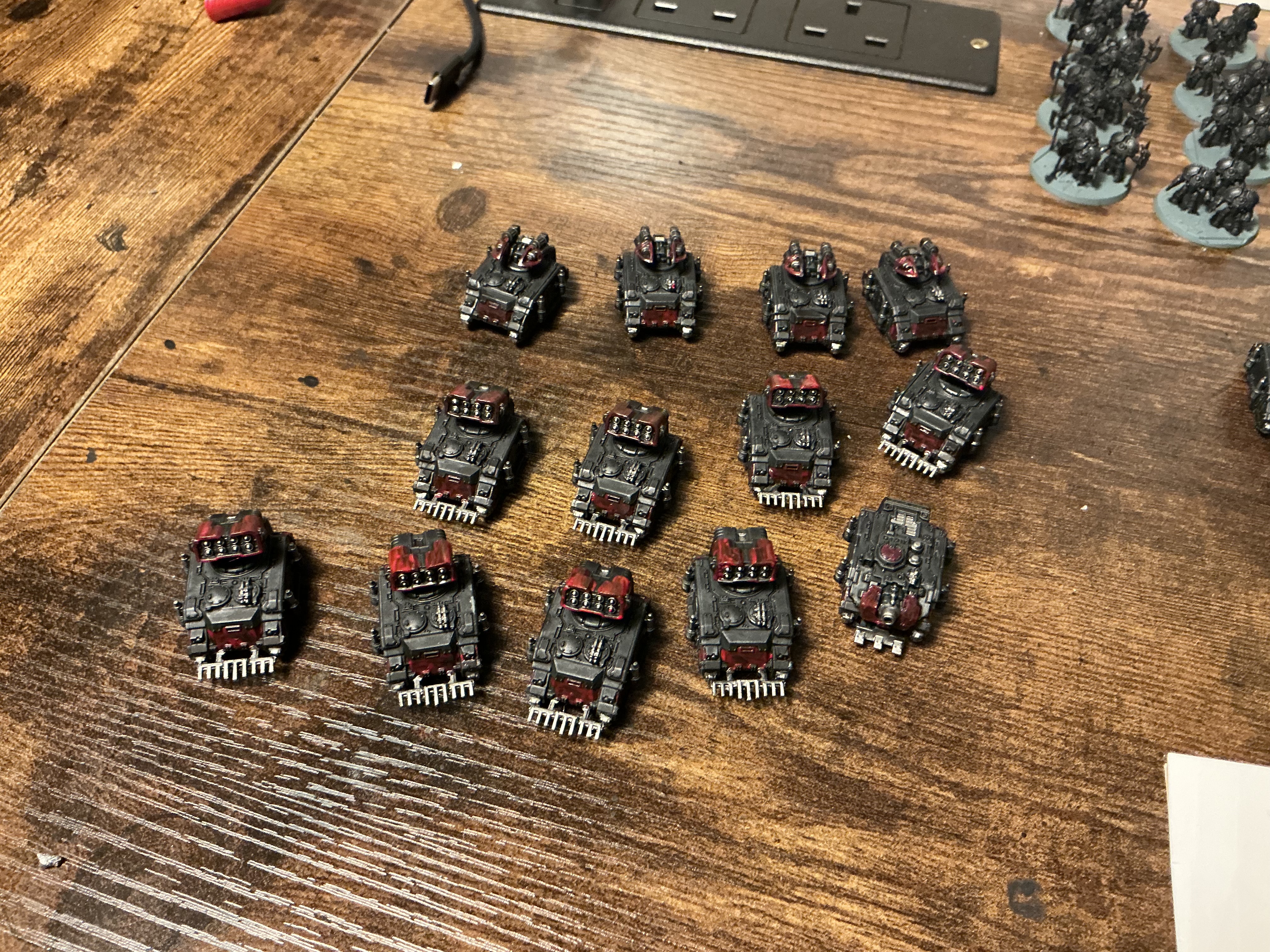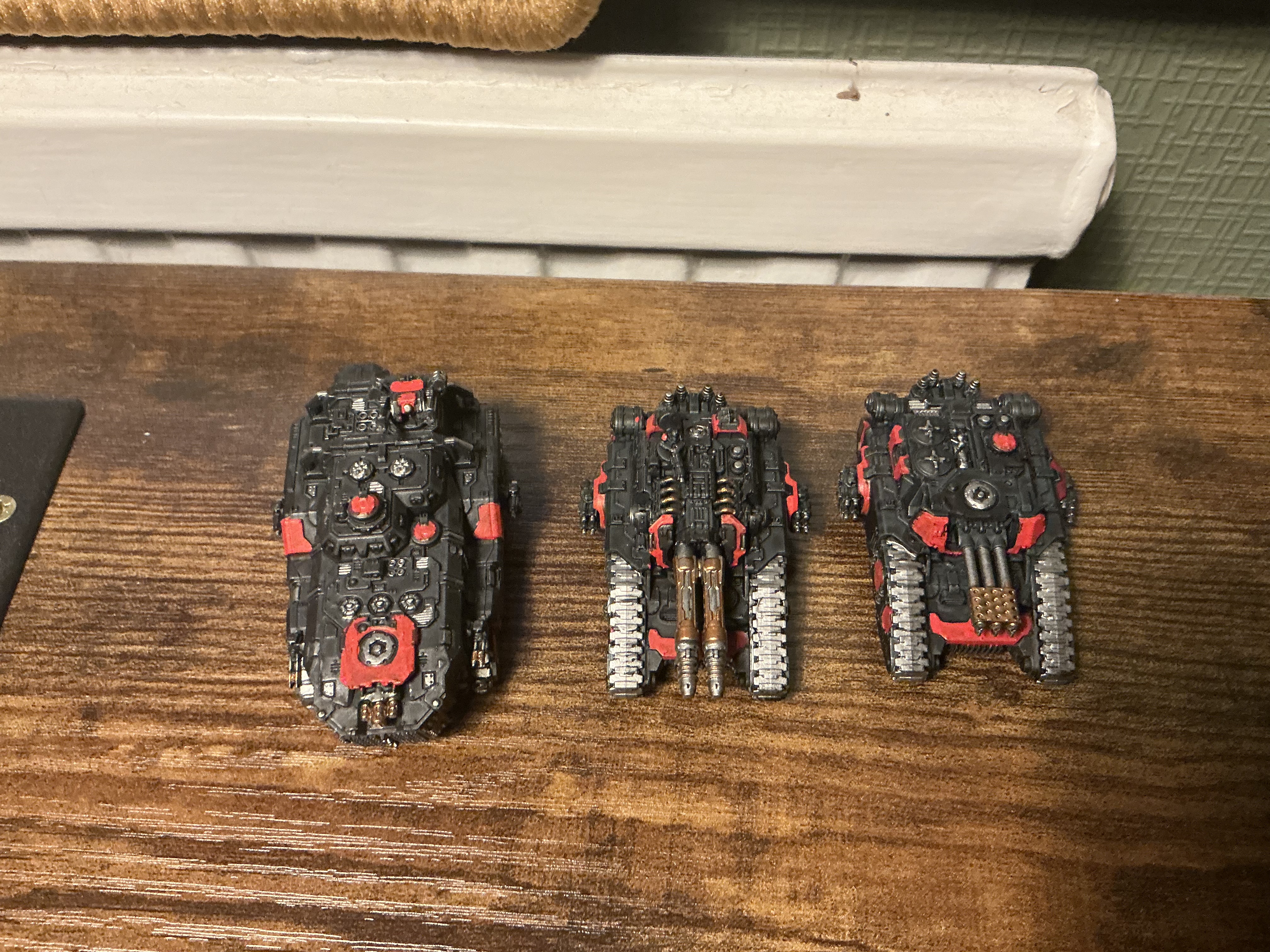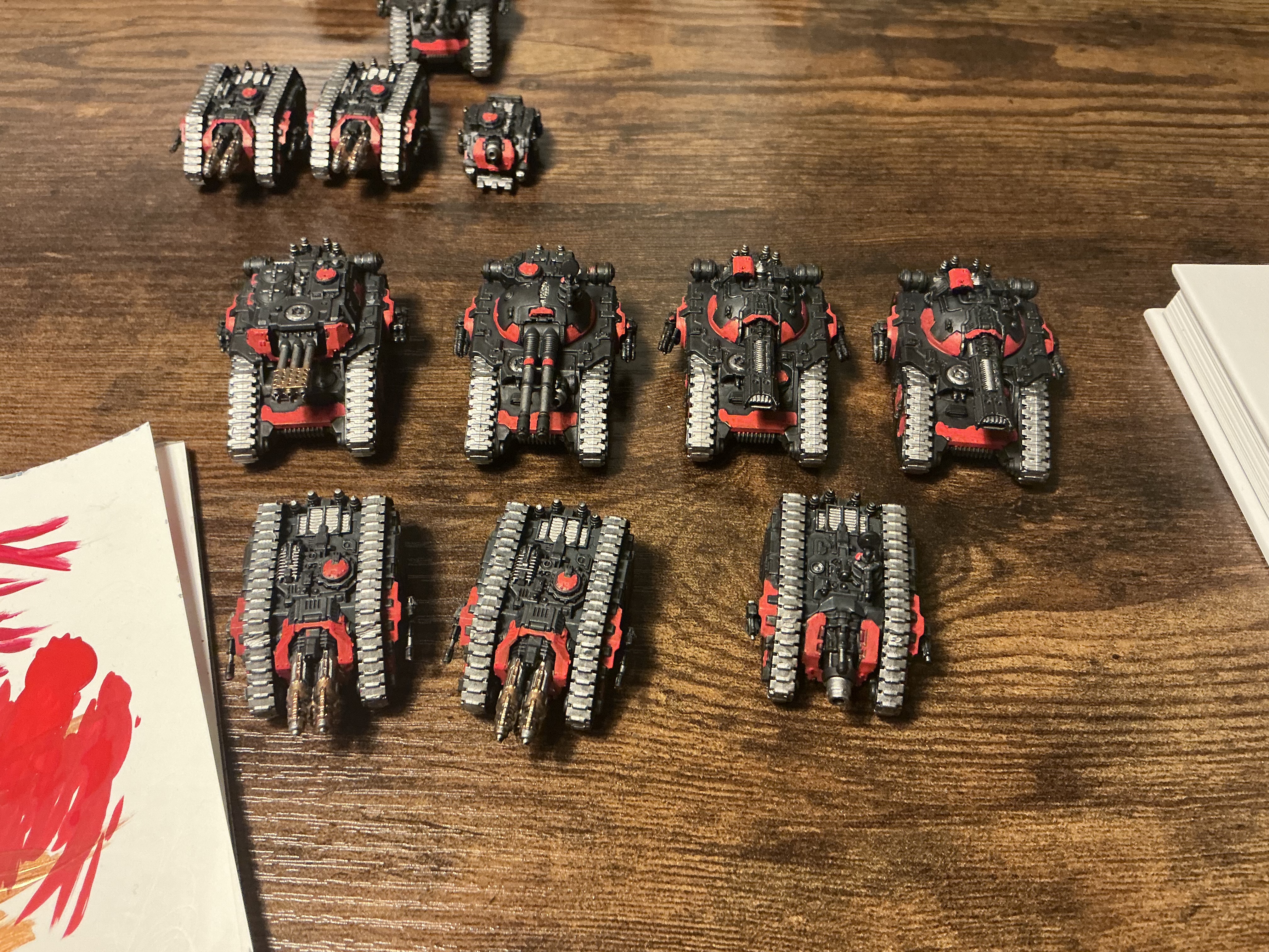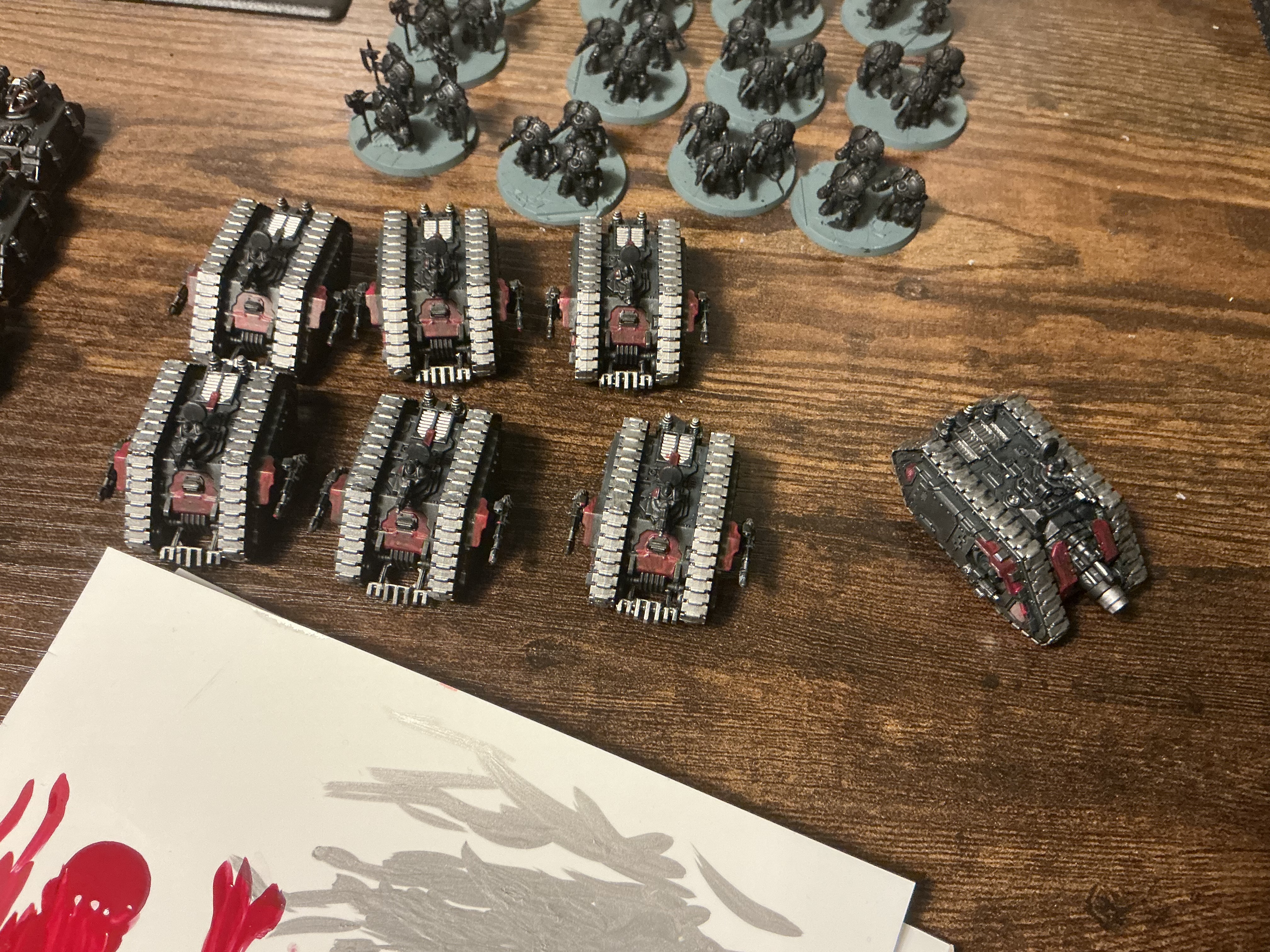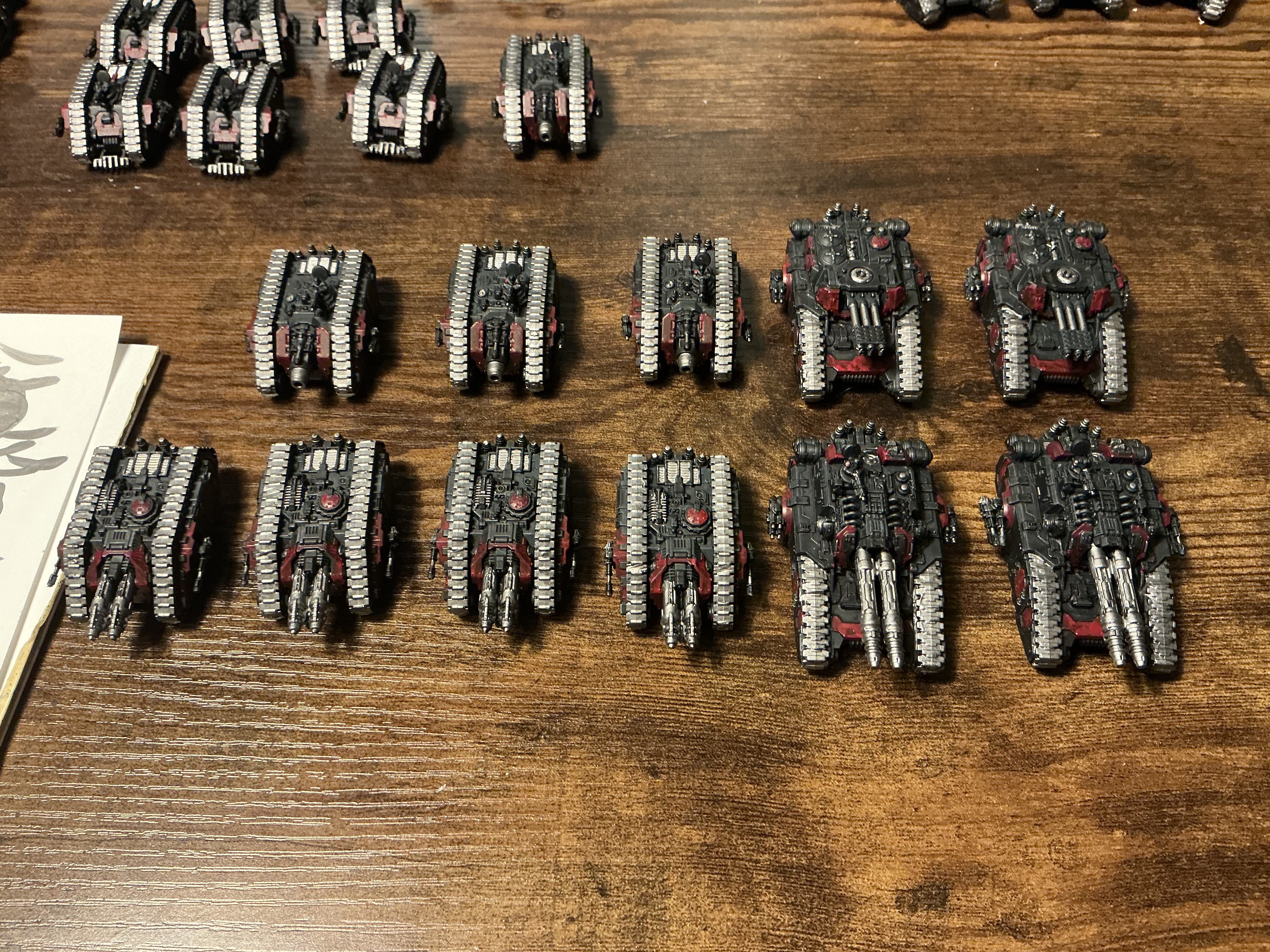 Pics to follow later. Automatically Appended Next Post: Getting close to this project being done. All that remains is Top Coat Red on all the tanks and Saturnine Dreads.