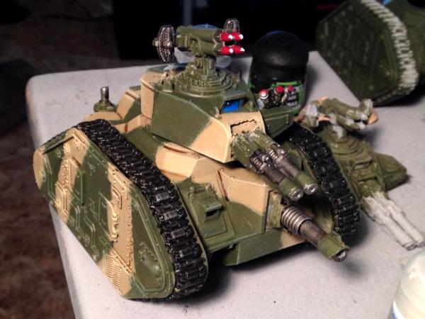 I just had a look at the tutorial and they do shade both the yellow and the green using Agrax Earthshade. It is a bit more subtle on the green than the tan, but it's definitely there in the tutorial. If you do that and find it's not dark enough, since the tutorial paints the green first, one thing you can do is paint the green then before painting the tan, hit the crevices of the green with a dark brown or black wash, then when you do the tan and do the crevice highlighting, the green will effectively end up with 2 layers of the shading, making it a bit more pronounced.