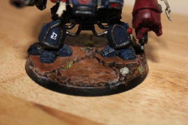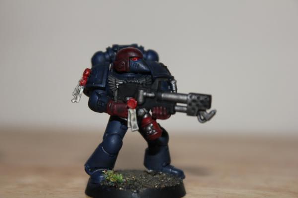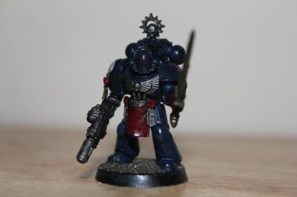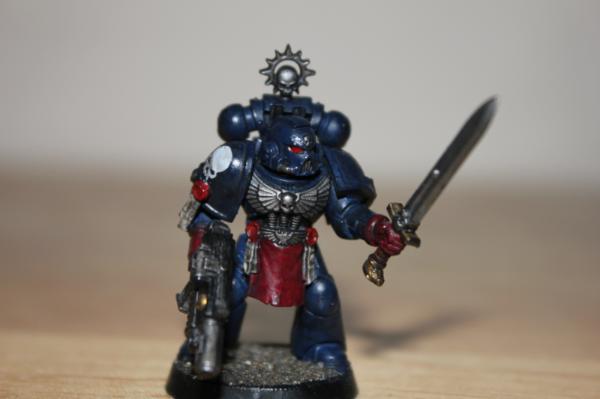 Aha I see  it looks very nicely done  if want for a try on a normal space marine you paint next, on the blue armour sections give it a blue wash  should make the armour still darker, but may give off bit more depth to the armour itself. As comparison to another, if it doesn't look right, can always re wash the areas in nuin oil But it still looks really good painted nevertheless
