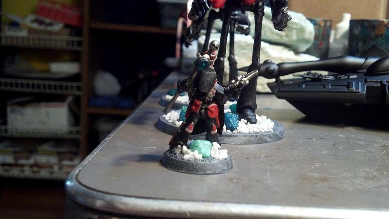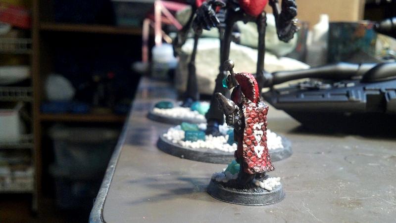 heres the finished wraithforce and reapers with one of my backdrops I found and some more excess bathroom tiles and aqaurium quartz HUNTERS OF THE CRONE WORLDS!