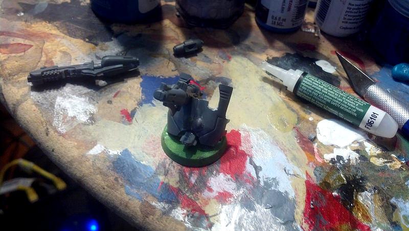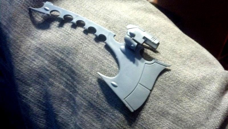 Next is the Wraithspine, I took two more of the gunsheilds and cut their little "ears" So i could touch their edges and their circular inner mounts to make a U then put the big spine piece onto it pressed to one side so it stayed straight (those a little bit more scrath savy can figure a way to center it), then used a shreiken pack to cover the extra space.