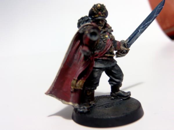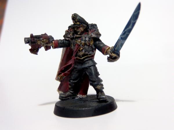 Looking good there. A tip:since you do use a dark color on a black base why not put sand down then use your mud color & then a light drybrush? It's minimal work but it really shows that it's finished. Also kudos for saying IMPERIAL GUARD & NOT astra militarum.