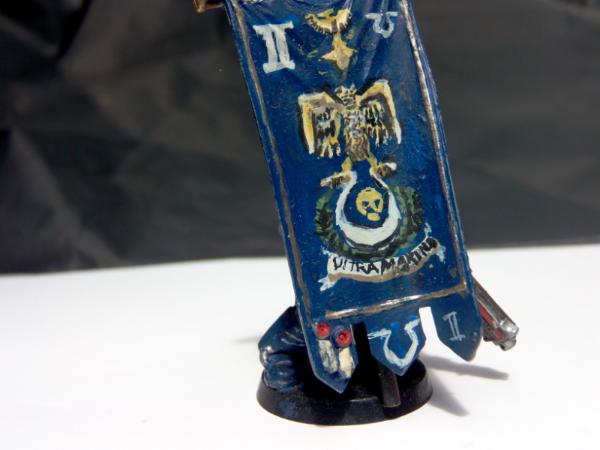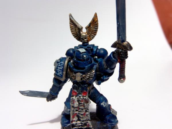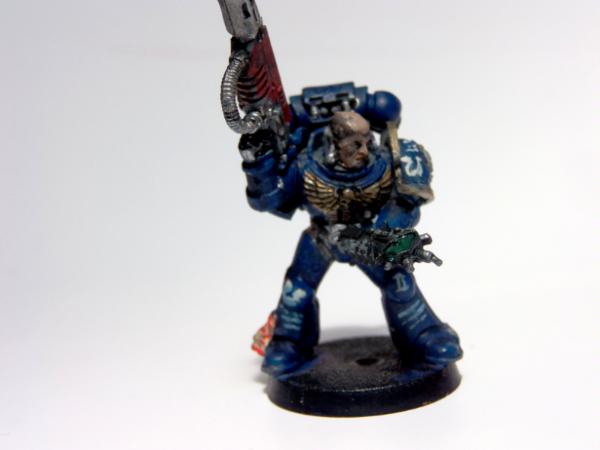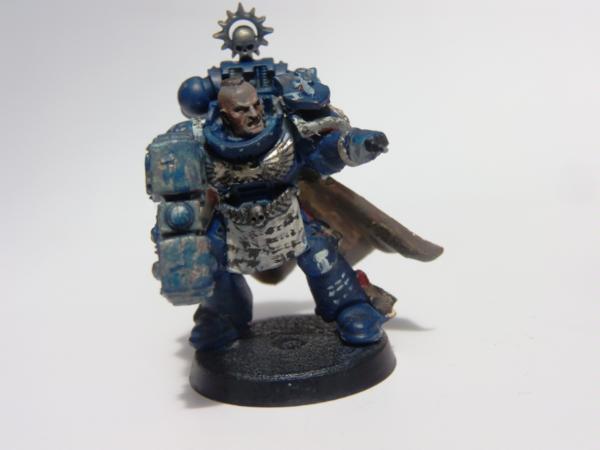 The tabard needs re-doing, it's a relic from his previous role as an Ultramarine Company Champion (yes, the whole squad were repainted, but I missed that bit