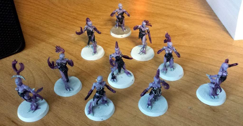 What would be a good base color for these that play well with the purple and black scheme of the daemonettes? Maybe a sandy yellow or yellow green.