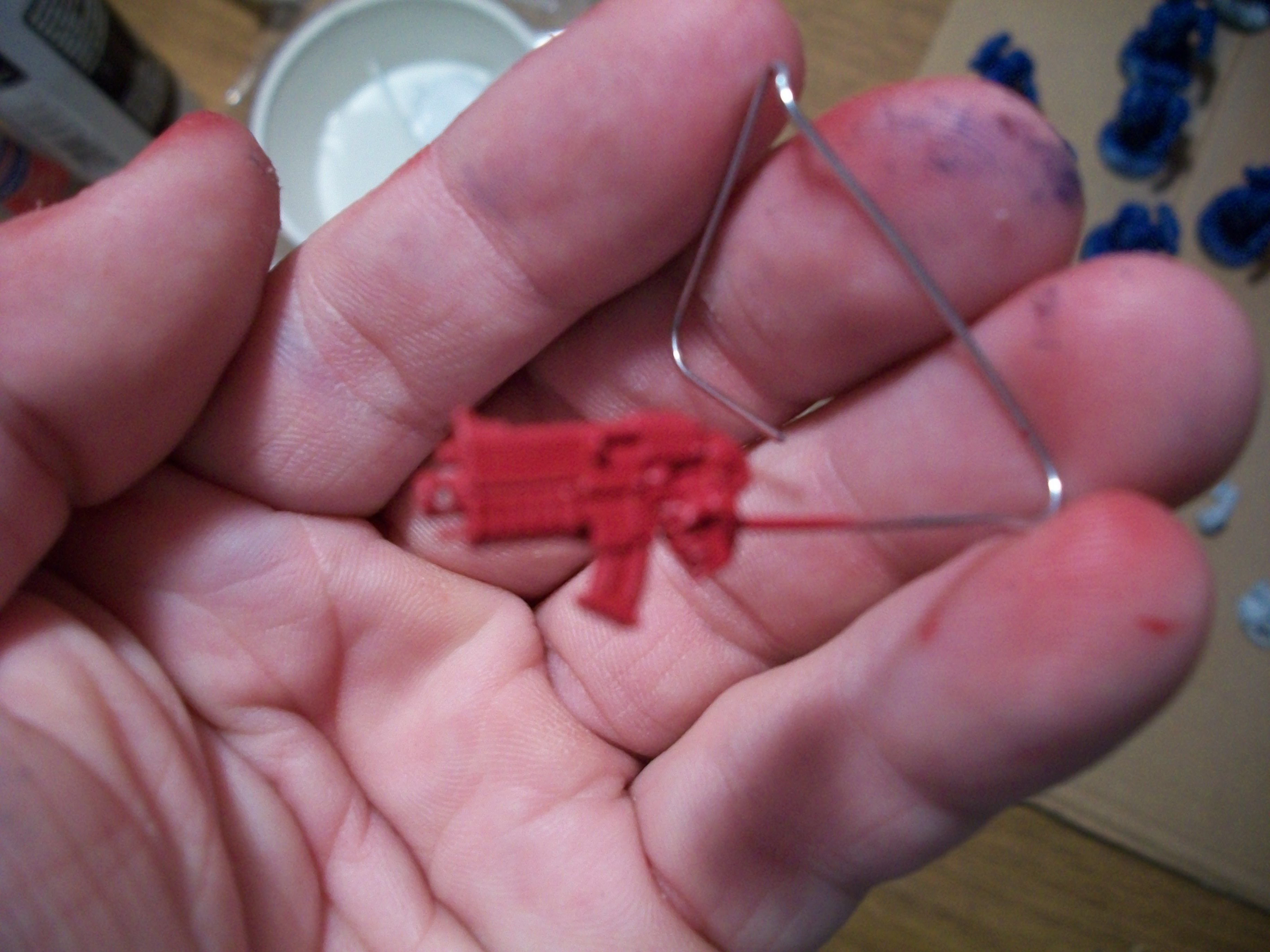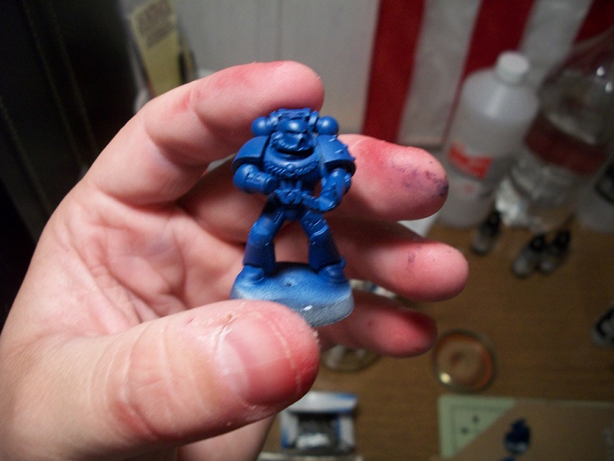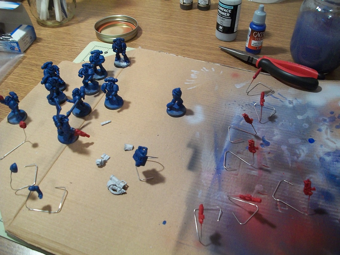 So actually got some work done today. I'm just starting out so for some reason red is hard as hell to paint... lol maybe I should have went black. I mean just a little bit of water like 25% water to 75% red is to much water. But I just cleaned out my airbrush and loaded up some red with airbrush medium and it layed down okay. I think I'll have to do the black wash to darken it up though. I tried one tac marine by hand in blue, it took like 30 minutes and then I just loaded up the airbrush and done the other 9 in less than 30 lol. They came out a lot more even and nicer looking.