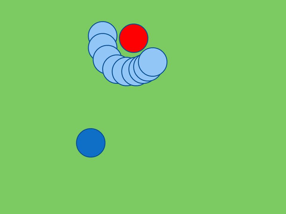 The following graphic shows possible legal charges for the blue model. The light blue circles show possible(but not all) final positions for when a model charges.
