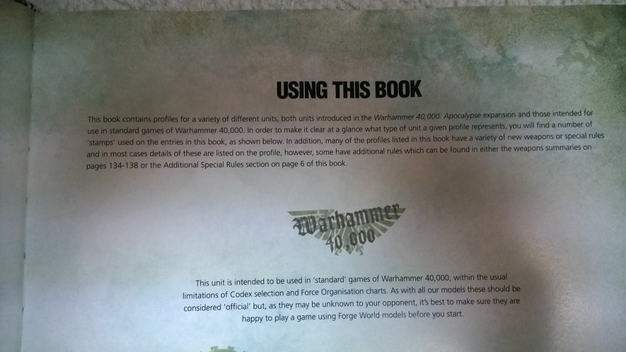 Ohh cool look this book is owned by GW and here it says how to use them in a regular 40k game.