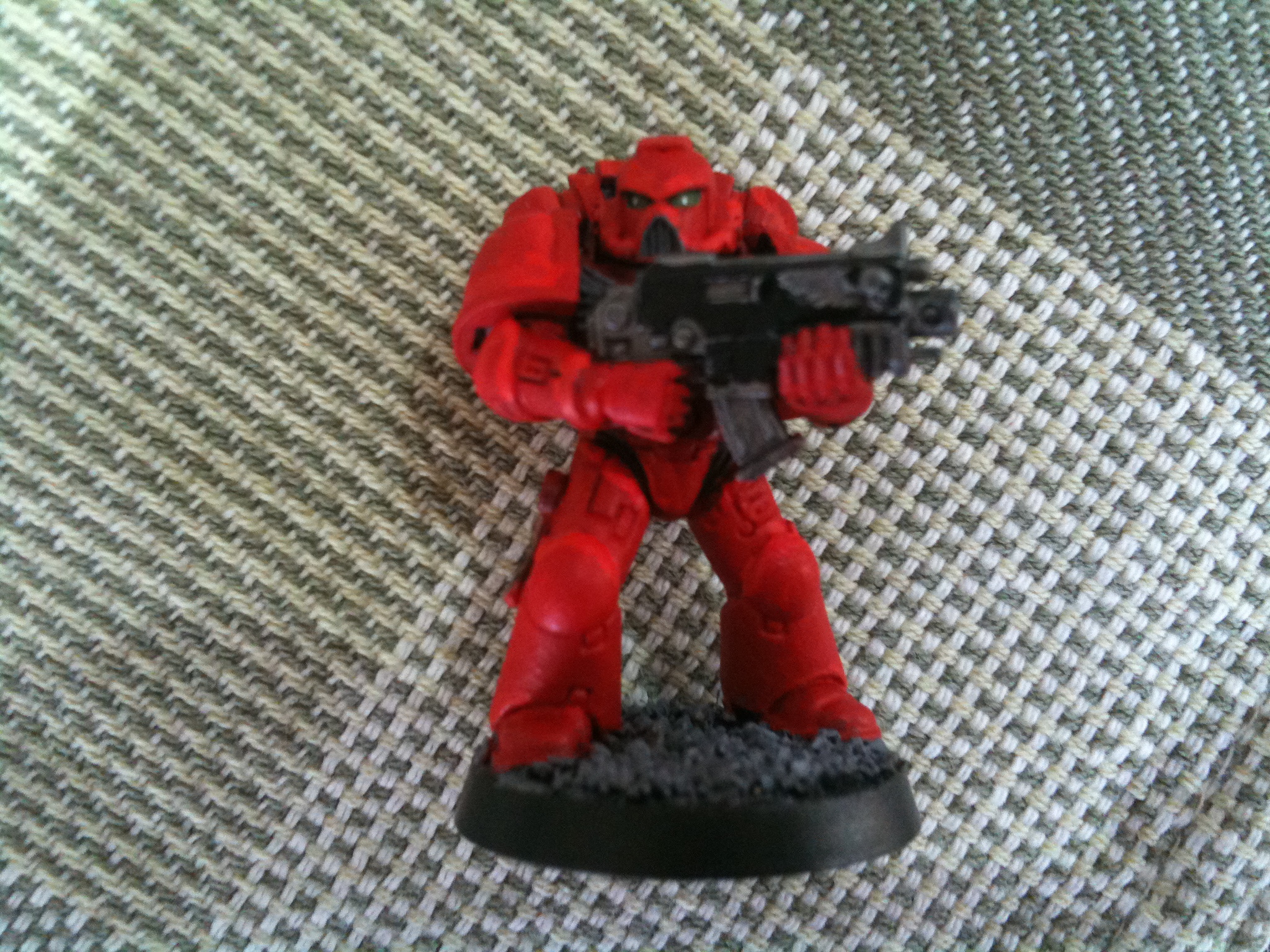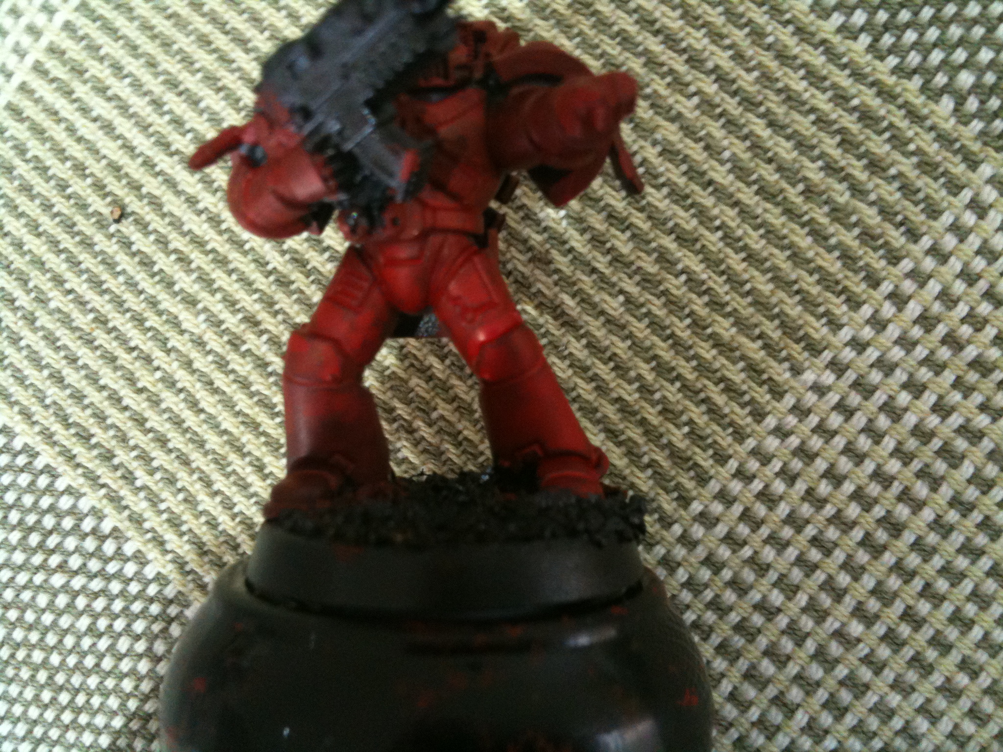 I use a black primer for my blood angels so what I do is paint brown onto my primed models, leave to dry then hit it with a layer of brown + a little bit of red. Repeat this until you're satisfied with the brightness of your red basecoat.