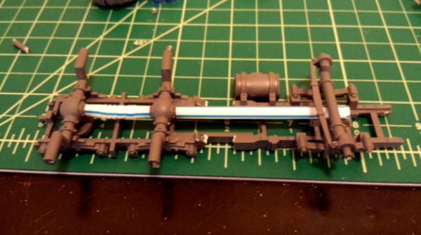 Next I straightened out the chassis with some sprue I had lying around, you also see I reinforced the back axels with some bendy straw (cant go wrong with 250 straws for $1)