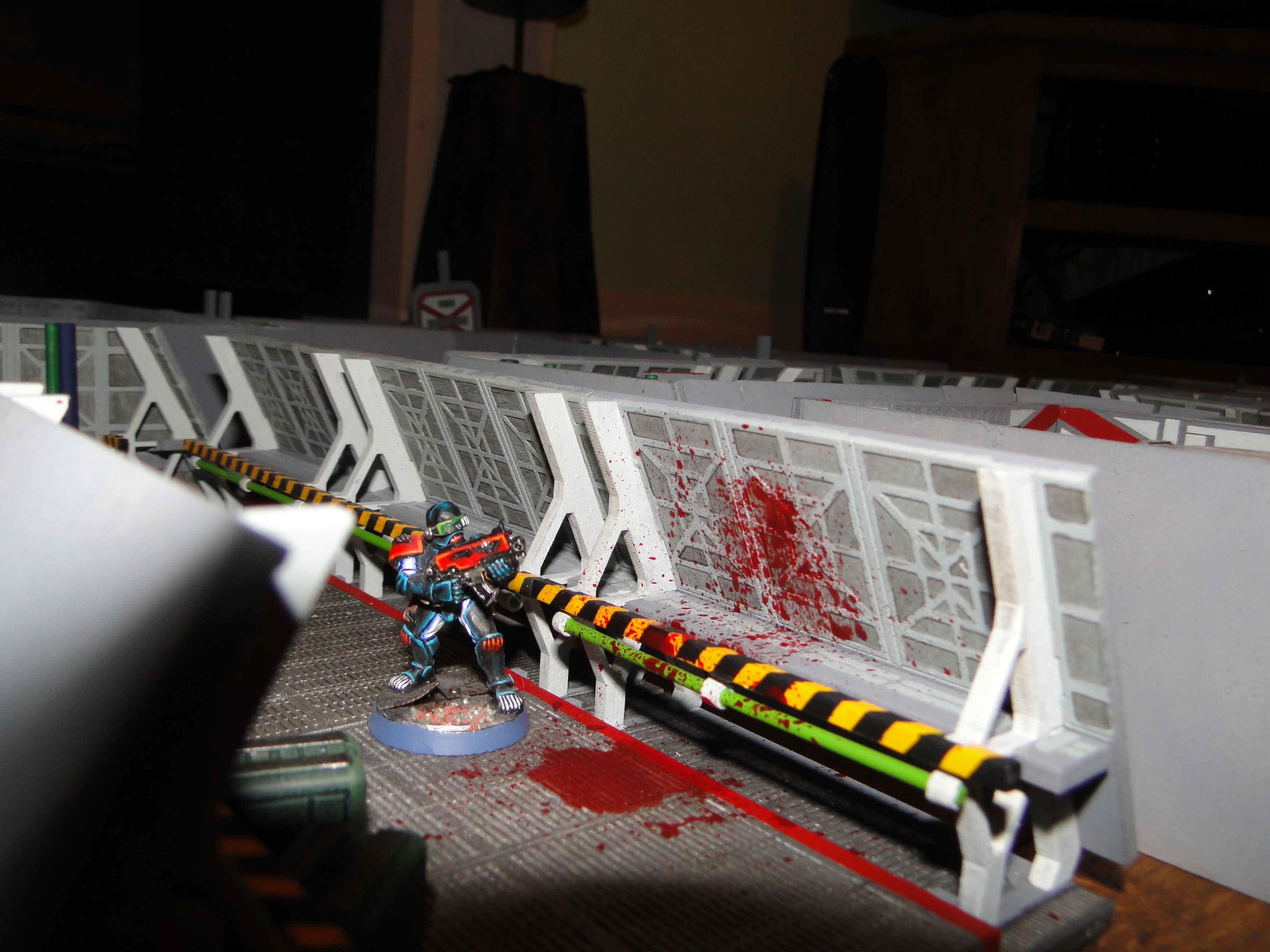 The terrain is modelled of Aliens. I didn't want a 'dark' look on it, and when for a cleaner more starship interior feel. That's why I painted greys and whites. Originally I'd planned for this to play Sedition Wars on, but due to CMON, I sold all of it. Then the AVP Kickstarter came out..........