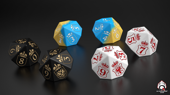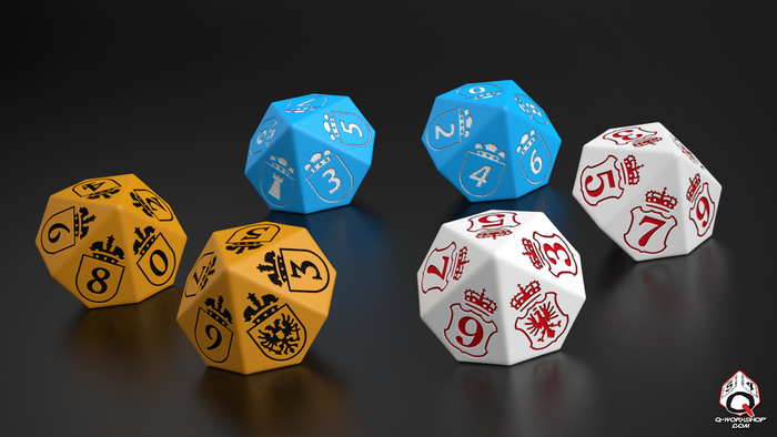 It's time to reveal new stretch goal - for 32.5k. It will unlock dice sets for all new factions - Transylvania, Brandenburg and Holy Roman Empire. Photo is just first visualisation, final sets will have more refine colour.