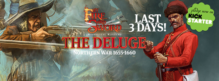 Encouraged by the success and positive player opinions we decided to use Kickstarter once more in order to finance the first large By Fire and Sword supplement: The Deluge: Northern War 1655-1660. The main aim is to gather funds to publish Polish version of the supplement (which is almost ready) and finish work on English version so it can be published as well.