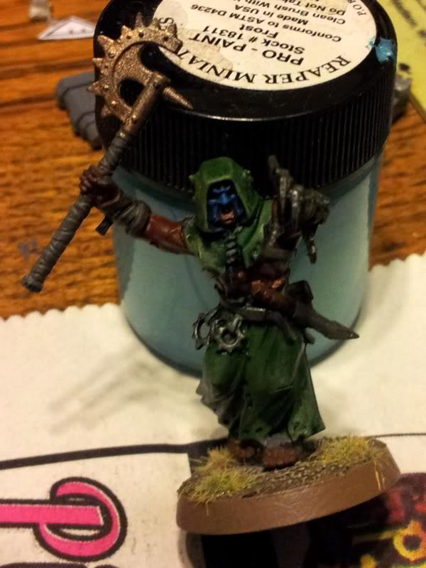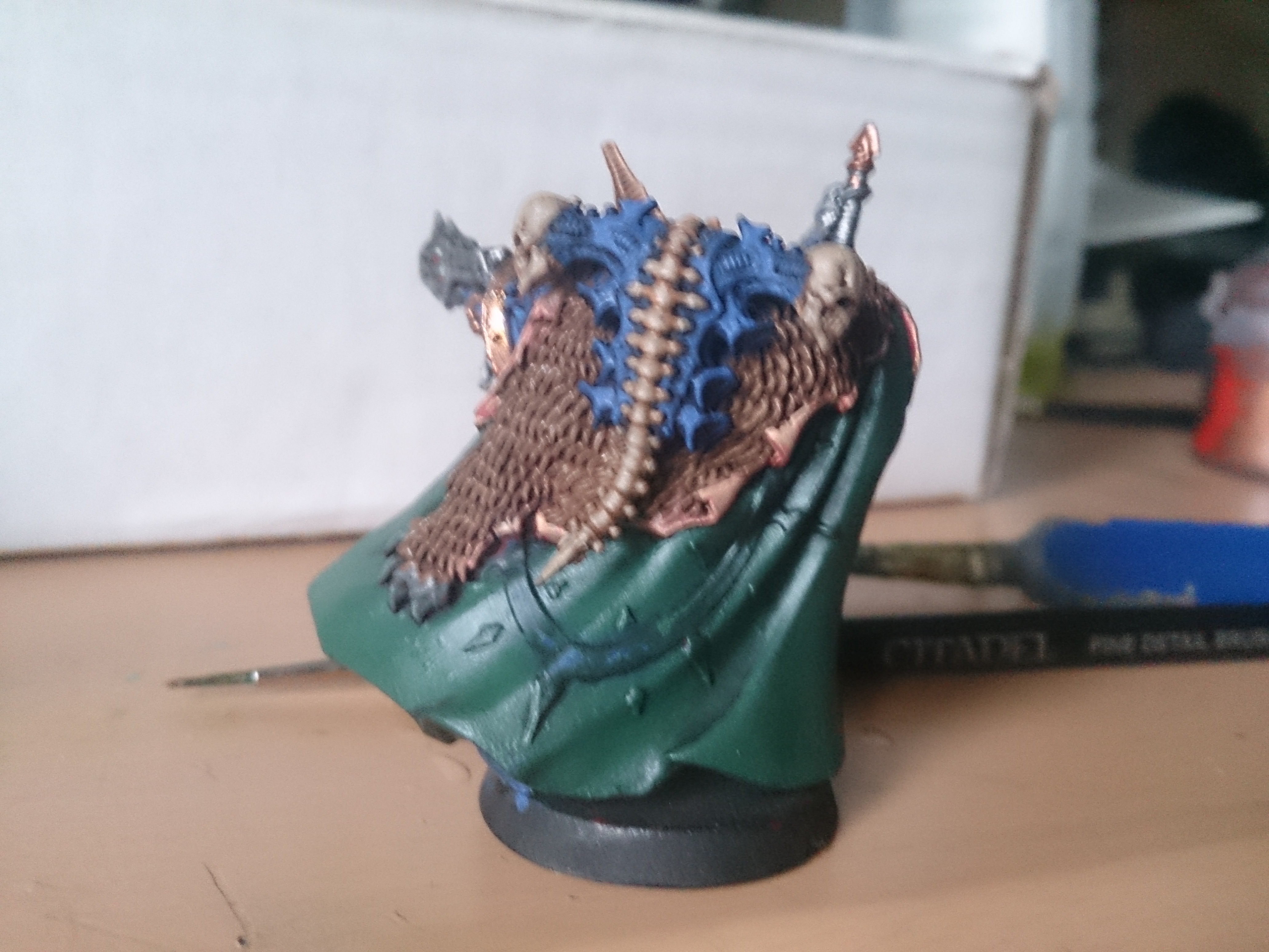 Luckily I found my medium drybrush. Do you guys think the green cloak works with the thousand sons style blue?