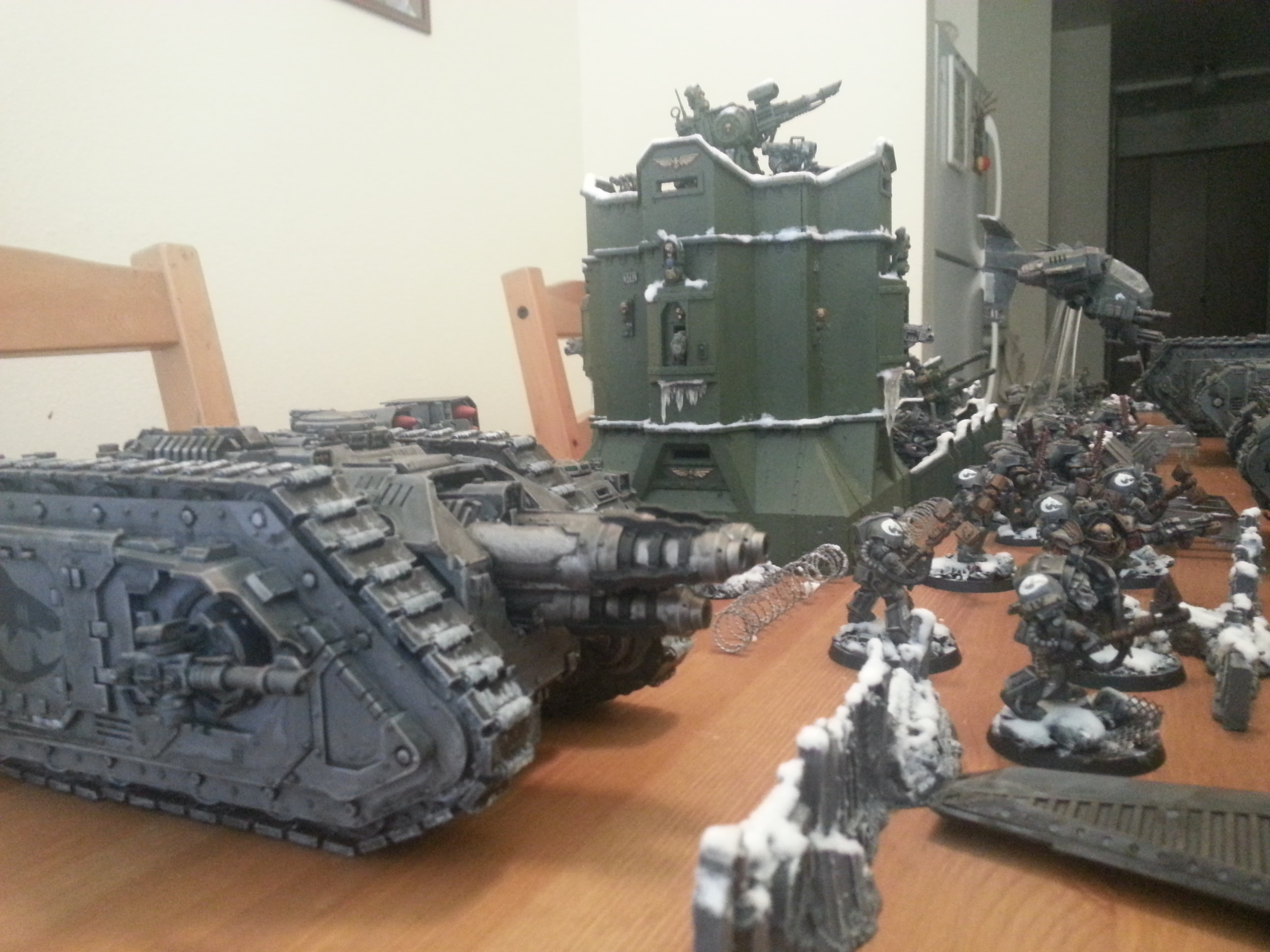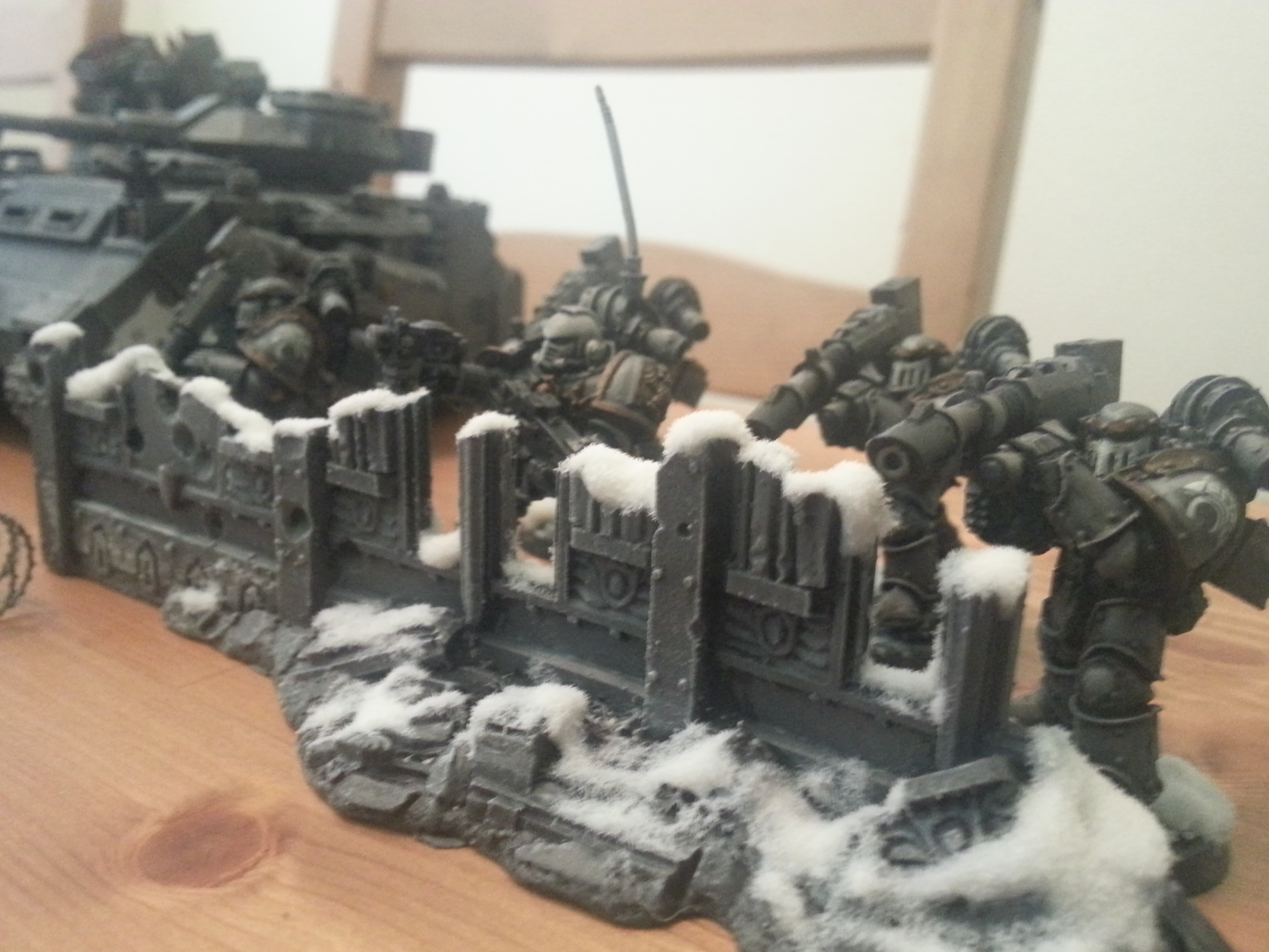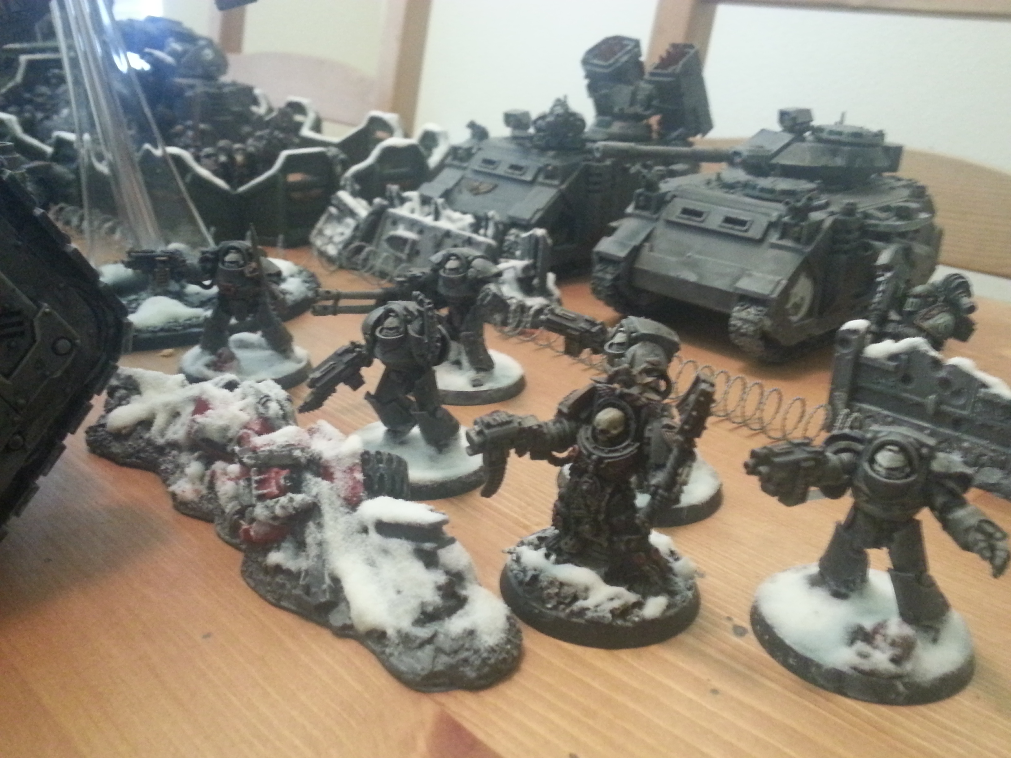 Really nice looking "dirty" army. Very fluffy and the snow is well executed. My only lament; and I know this is for my Salamanders too, Is that it is really hard to appreciate the griminess of your chapter in photos rather than close up in your hand. My ash covered salamanders suffer from the same thing. Pick out a few details would be the constructive criticism I could give, but this might be coming from someone who has no right to criticise!