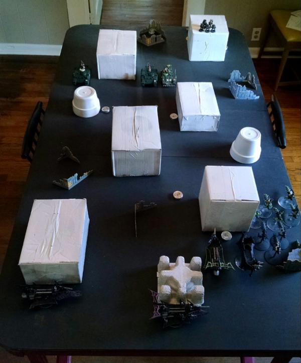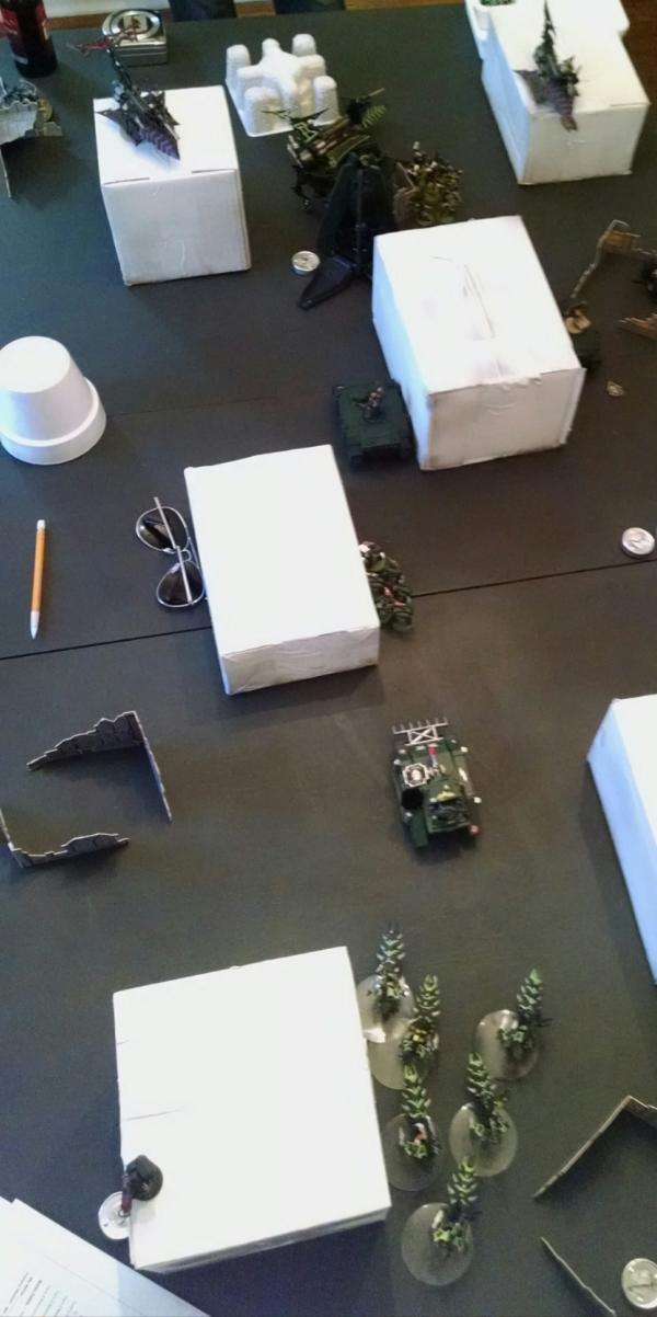 I quit 40k fifteen years ago when I discovered drugs, girls, and computers. Now I'm back because I need a time-sink hobby. My friend-from-back then is also getting back into the game so we're practicing 7th edition. This is our fourth game together.
