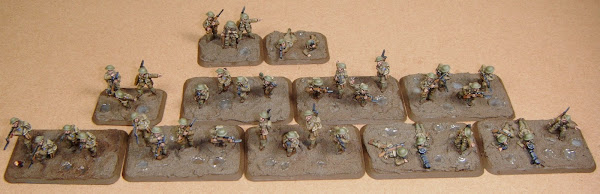 Bases are a little too 'Passchendale' for my tastes, some dead stumps and small patches of weeds would perk these up a bit IMO. I've been thinking about adding small red flowers to WWI bases but this may be a bit too clichéd. It could probably do with some subtle way of making the rifle grenade teams more obvious as well. Otherwise a good start to your army.
