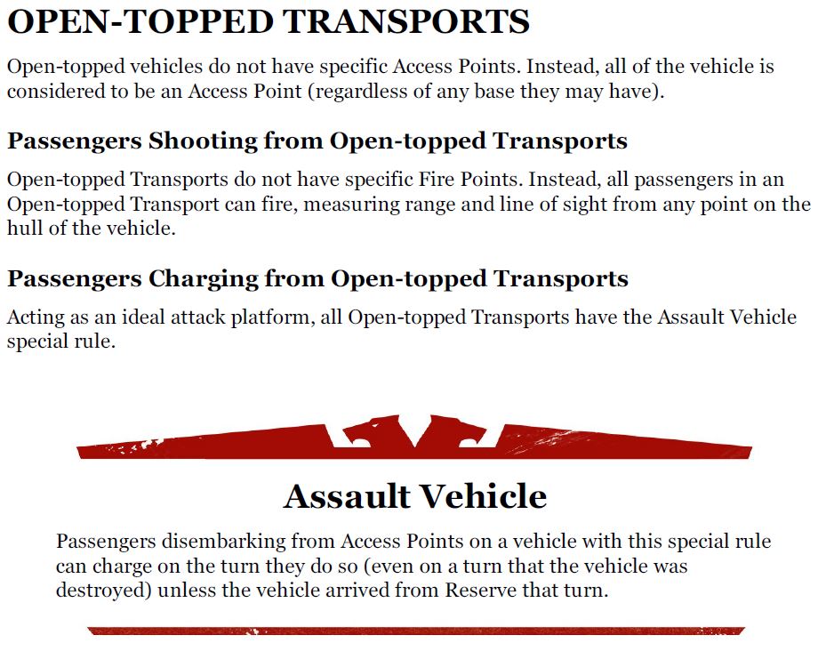 Good point on open topped being an assault vehicle... Although I'm not seeing any open topped vehicles with transport capacity.