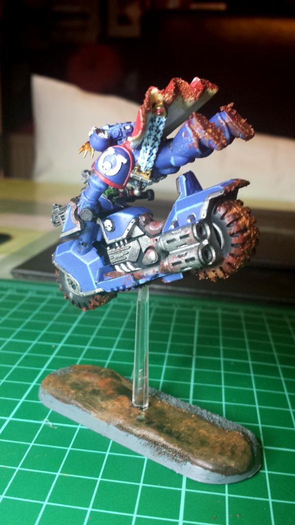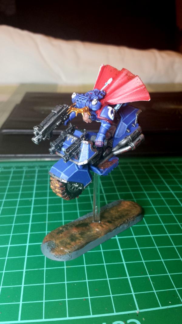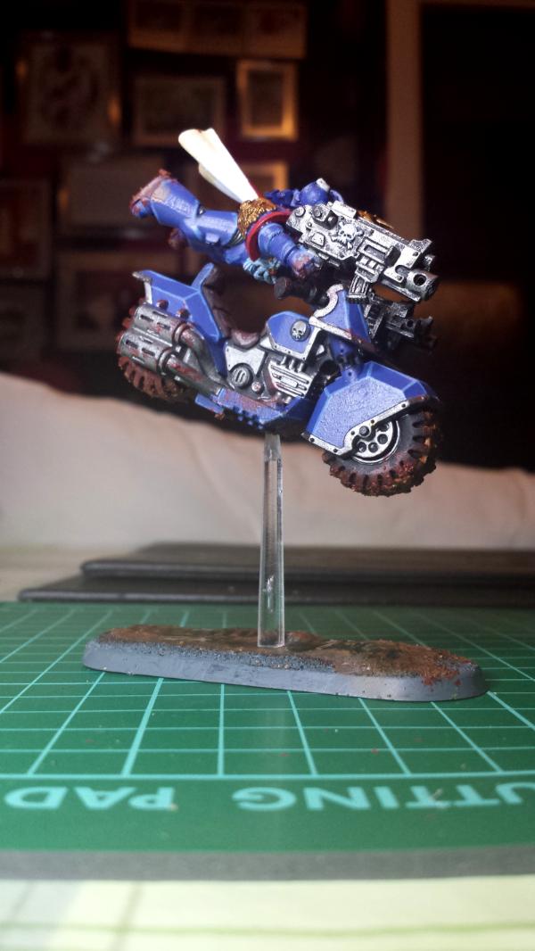 This is primarily for fun - the captain of the Imperial Stunt Motorbike Display Team (officially sanctioned by Holy Terra). The bike is magnetised to the base so you can take the flight stick off, getting rid of that pesky LoS advantage Pics are from my phone as I was too giddy to take time over them