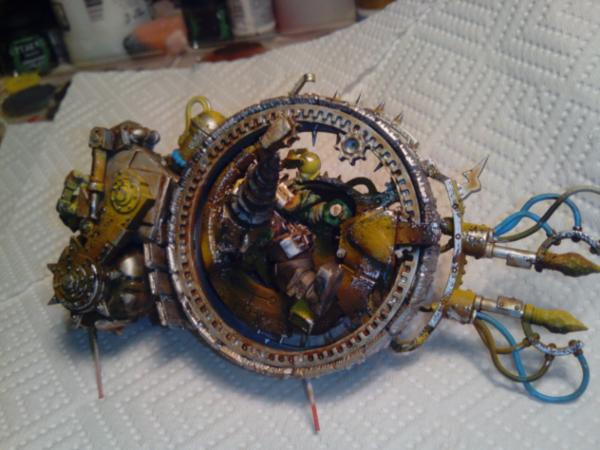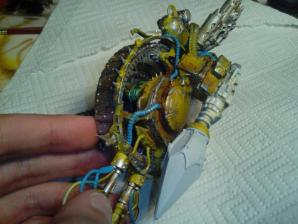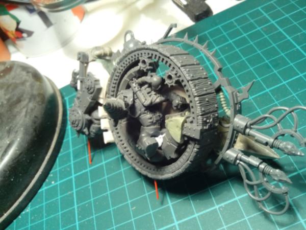 i agree about the footpedal, mostly an oversight as it all comes apart to paint easier and i overlooked that when moving from modelling to painting. the doomwheel will recieve quite a lot of brown pigments for mud etc, along with some more preshading, it will almost be impossible to see that it should be wood once finished.
