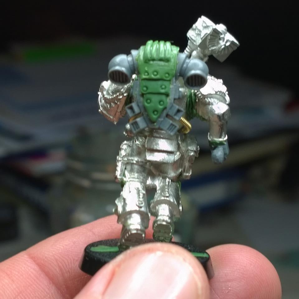 I just wanted to share the latest commission I've been working on at Big Dog Miniatures. The client wanted a conversion of a pre heresy Alpha Legion commander he could use to represent Armillus Dynat. He was quite clear that he wanted him in older Mark IV style armour and to wield a thunder hammer and power sword.