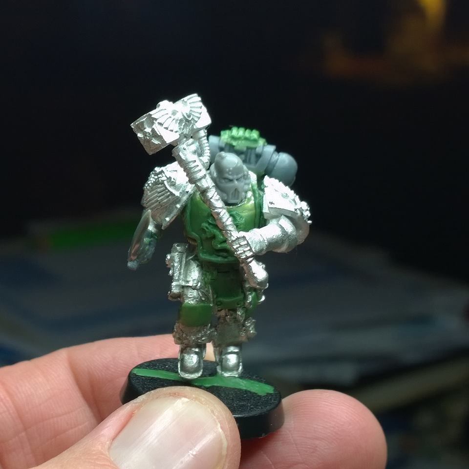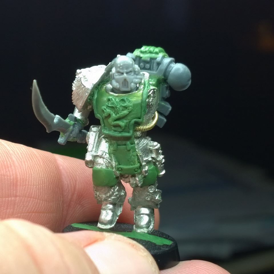 The basis of the mini was the 2008 Games Day Space Marine Commander and obviously theres been quite a bit of green stuff work added to him.