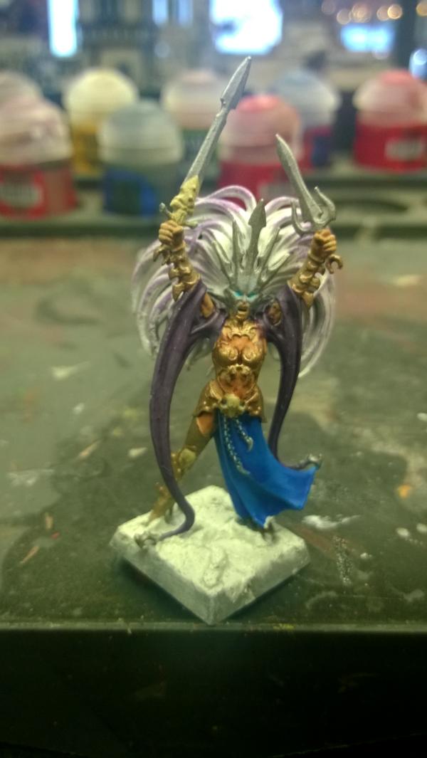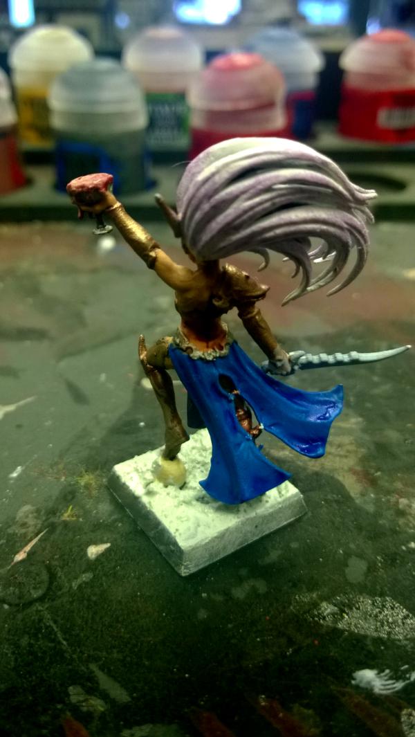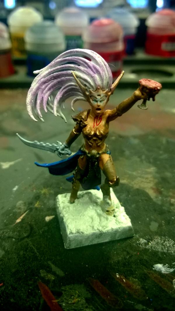 I have been wanting to do a Dark Elves army for a while so far I have been working mainly on Warhammer 40,000 Chaos Space Marines in Thousand Sons style, so when I moved over to WFB I thought I would create an underground Cult of Tzeentch, while probably being seen as fluff breaking due to the 'No Slaanesh Worship naughty elf *slaps wrist*' Stuff I highly doubt it would be impossible, since what's the worse thing that can happen to a rogue Chaos Worshipping DreadLord? Death? Dark Elves are always killing each other